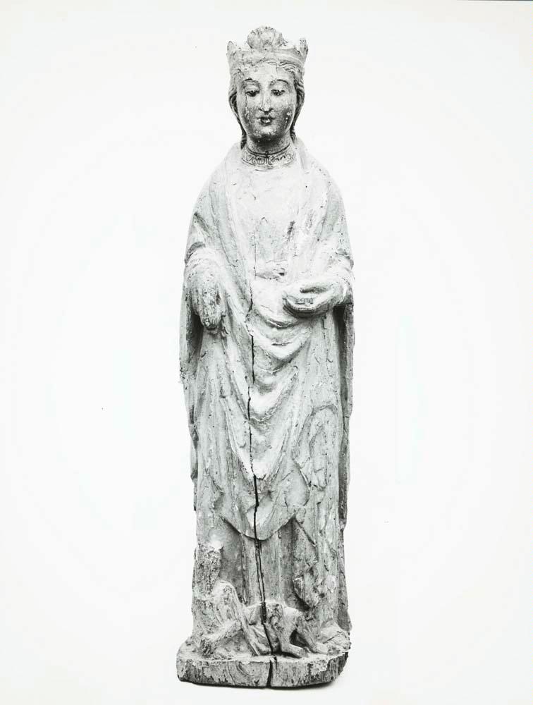 Fotografías de la restauración de la talla en madera de un santo con corona, procedente del Convento de las Madres Dominicas de Santo Domingo en Caleruega (Burgos)