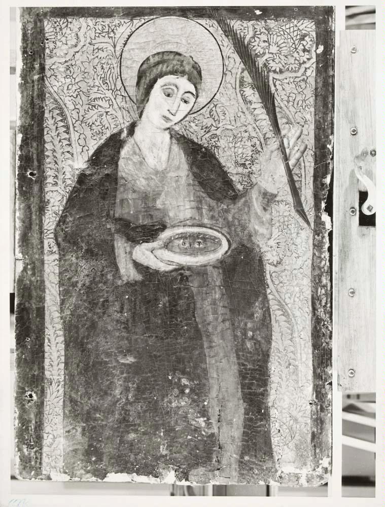 Restauración de una pintura sobre tabla de "Santa Lucía", procedente de la Iglesia parroquial de Gumiel de Izán, procedente del Museo Gomellano (Burgos)