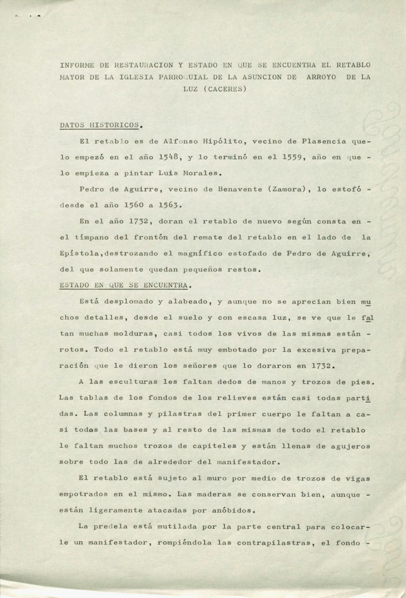 Restauración de nueve tablas del retablo de Luis de Morales, procedentes de la Iglesia parroquial de Nuestra Señora de la Asunción de Arroyo de la Luz (Cáceres)