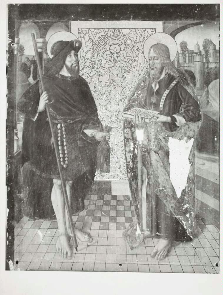 Restauración de una tabla de un santo y un peregrino, atribuida a la Escuela de Gallegos, procedente de la Iglesia parroquial de San Pedro de Tejada en Merindad de Valdivielso (Burgos)