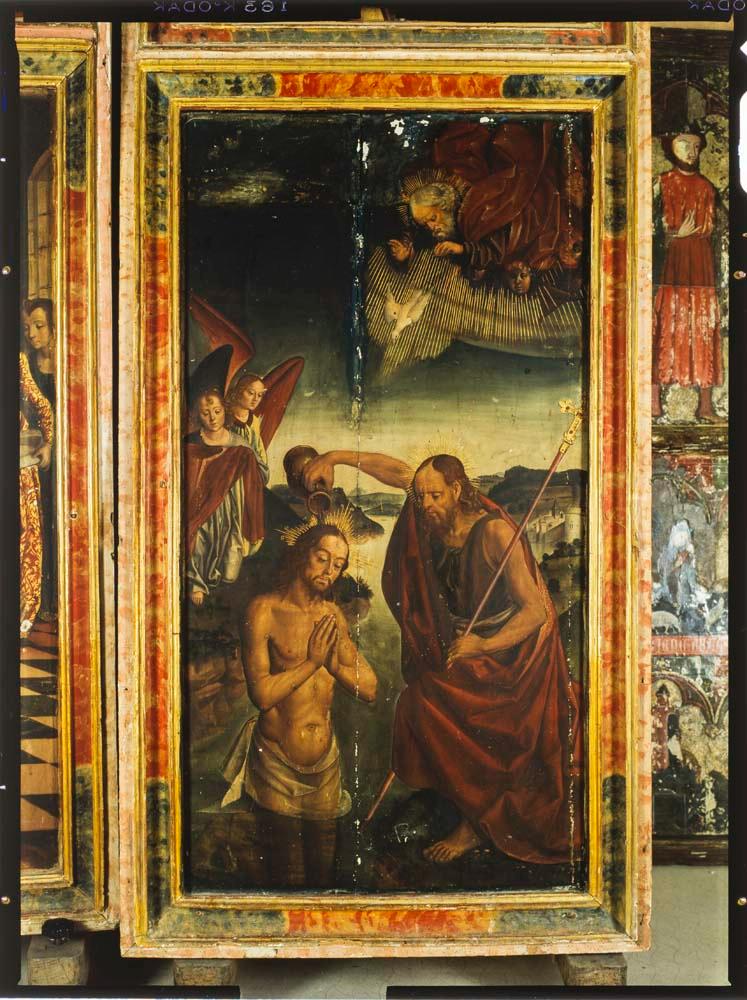 Restauración de la tabla "Bautismo de Cristo", procedente del retablo de San Juan Bautista, en la Iglesia parroquial de Santa María del Campo (Burgos)