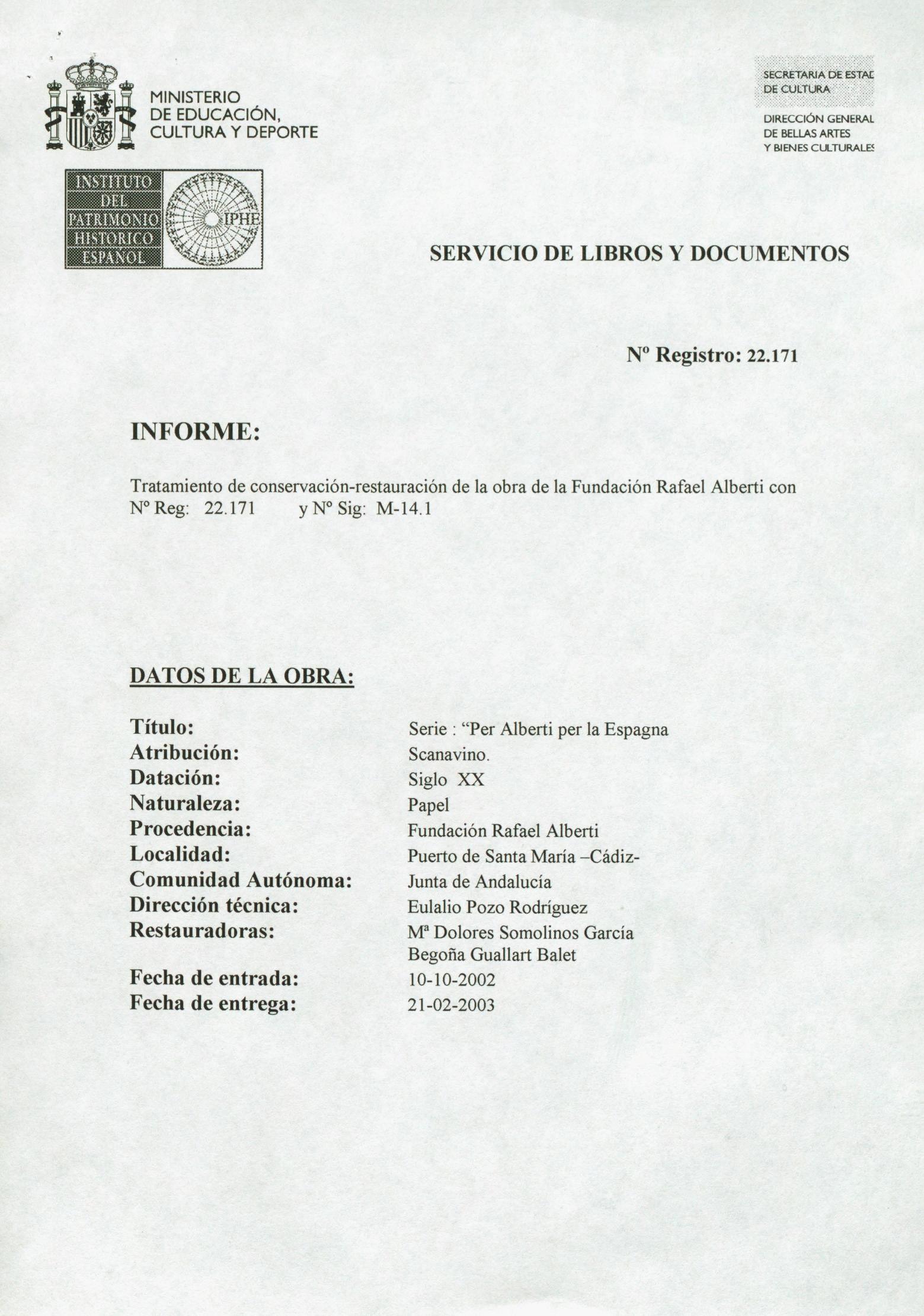 Restauración de la serie "Per Alberti per la Espagna", obra gráfica procedente de la Fundación Rafael Alberti en El Puerto de Santa María (Cádiz)