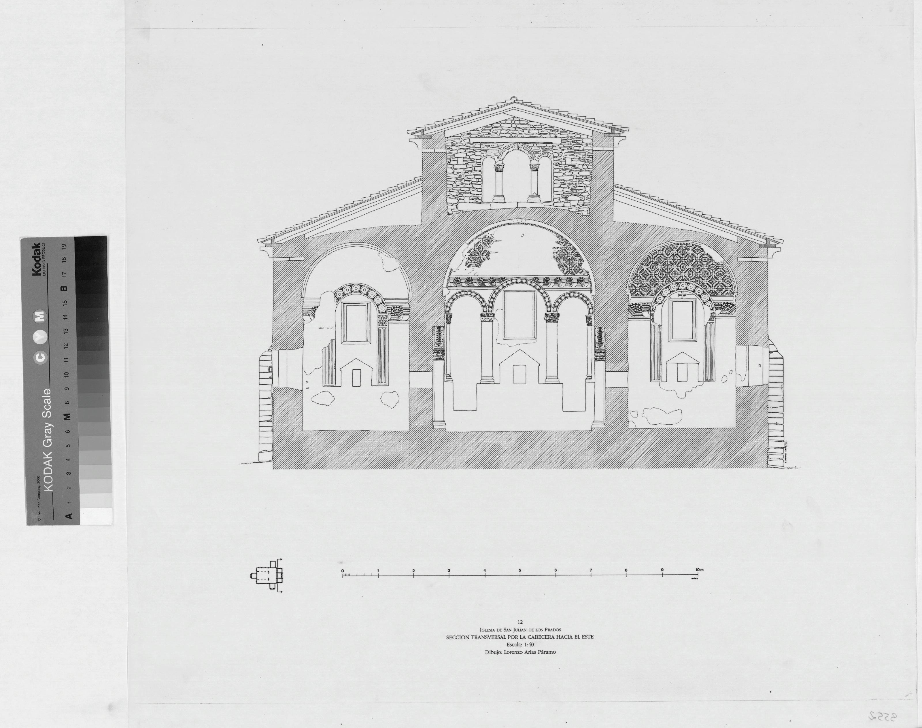IGLESIA SAN JULIAN DE LOS PRADOS: SECCION TRANSVERSAL POR LA CABECERA HACIA EL ESTE