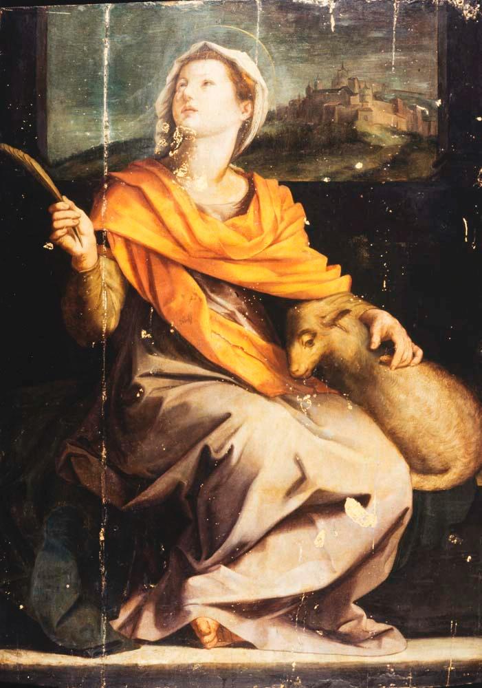 Restauración de óleo sobre tabla de "Santa Inés", procedente del Colegio de Nuestra Señora de la Antigua en Monforte de Lemos (Lugo)