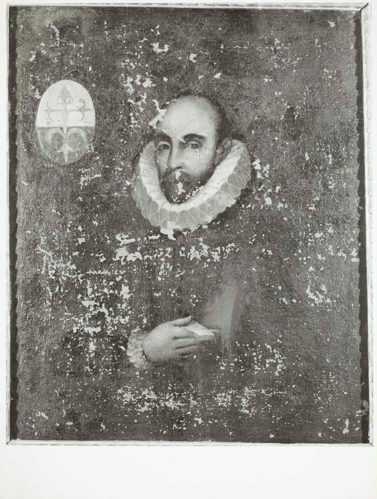 Fotografías de la restauración del lienzo "Retrato de caballero", procedente del Colegio Mayor de San Bartolomé y Santiago, en Granada