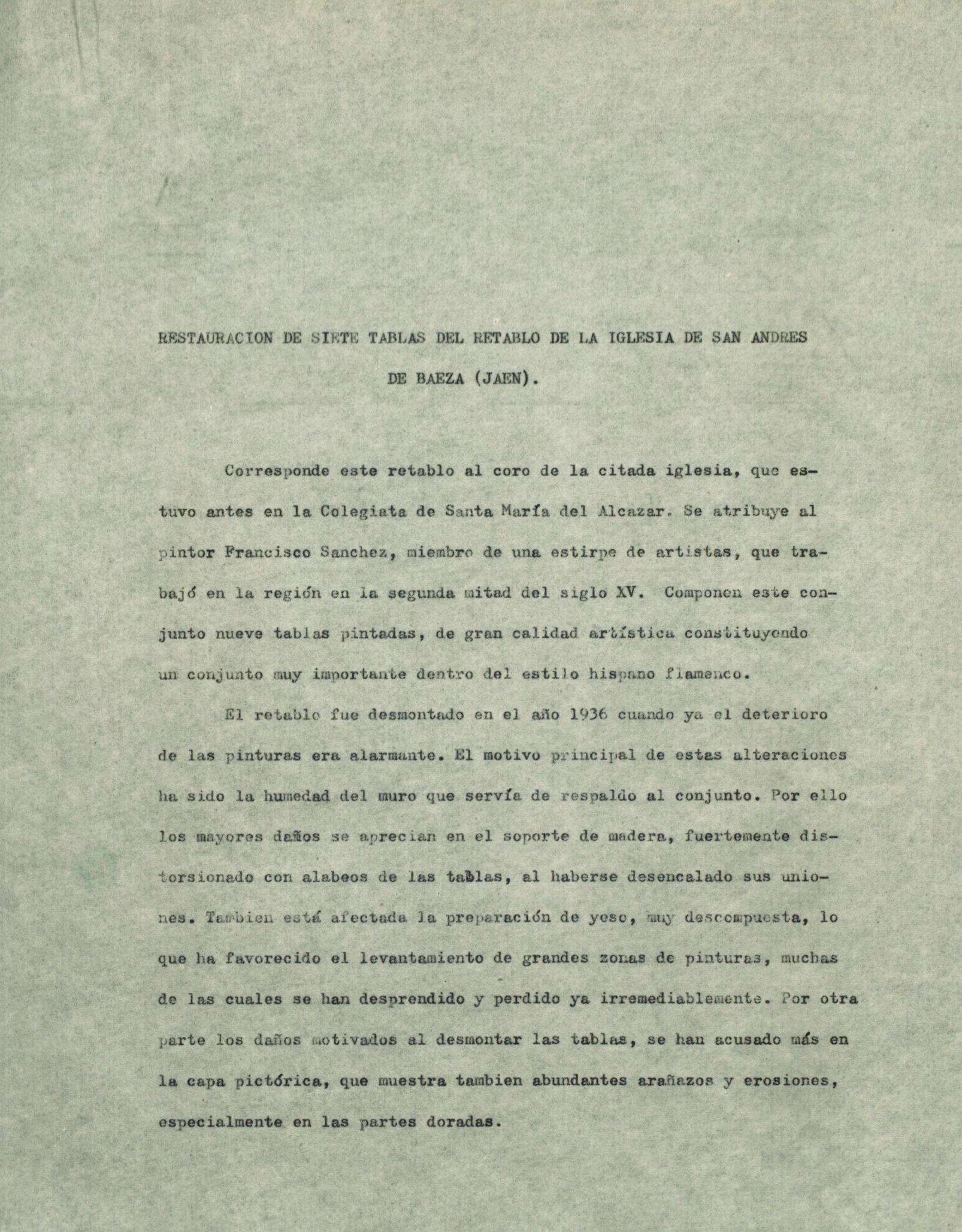 Restauración de ocho tablas flamencas del siglo XV, procedentes del retablo de la Iglesia de San Andrés en Baeza (Jaén)