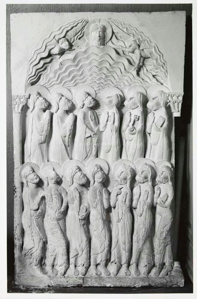 Fotografías de la reproducción de los relieves la "Ascensión" y el "Entierro y resurrección de Cristo" del claustro del Monasterio de Santo Domingo de Silos, procedentes del Museo de Reproducciones Artísticas (Madrid)