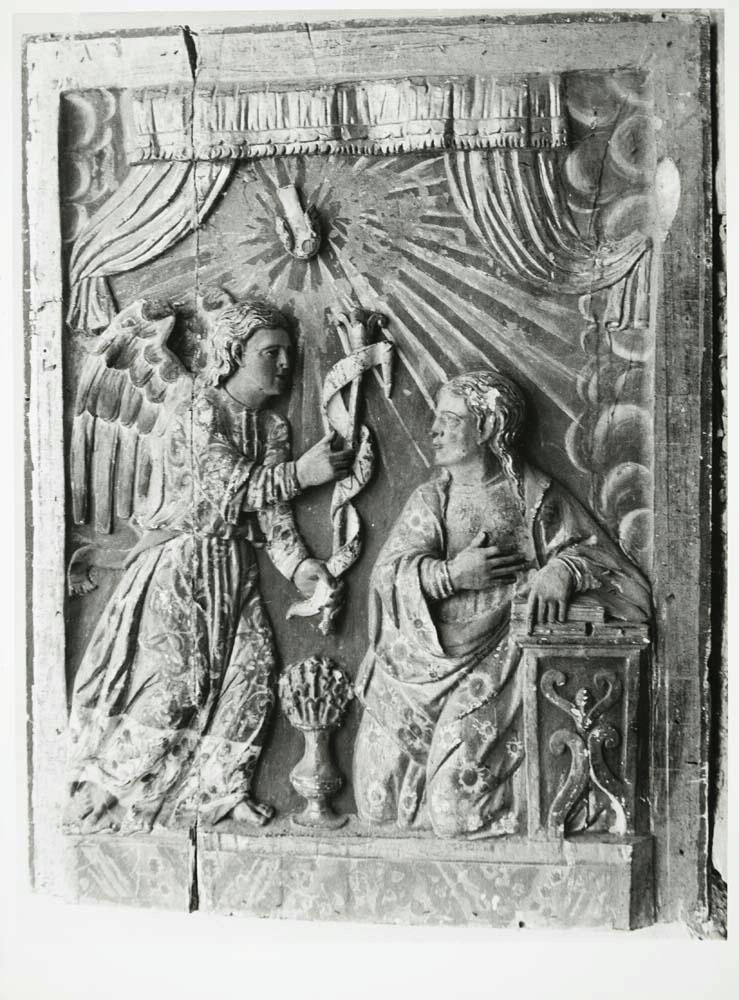 Fotografías de la restauración del relieve "la Anunciación", procedente del retablo de la Iglesia parroquial de Vejorís de Toranzo, en Santiurde de Toranzo (Cantabria)