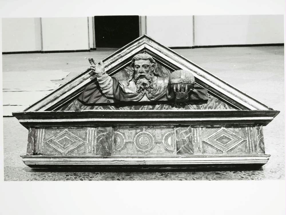 Restauración del relieve "el Padre Eterno" , procedente del frontón y tímpano del retablo de la Iglesia parroquial de Vejorís de Toranzo, en Santiurde de Toranzo (Cantabria)