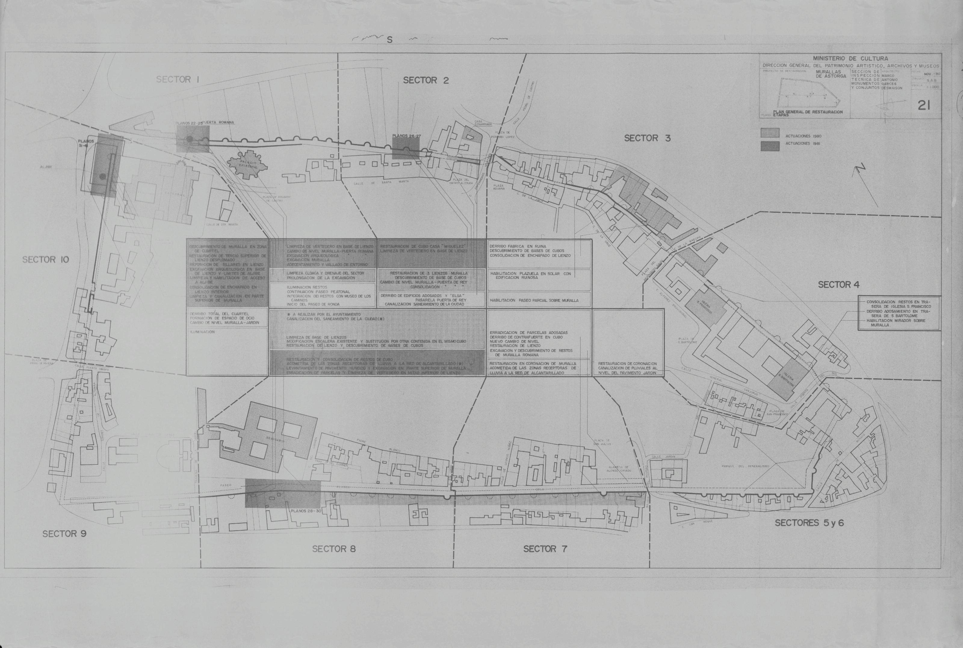 MURALLAS DE ASTORGA: PLANO PLAN GENERAL DE RESTAURACION. ETAPAS (SECCIONES 1-9)