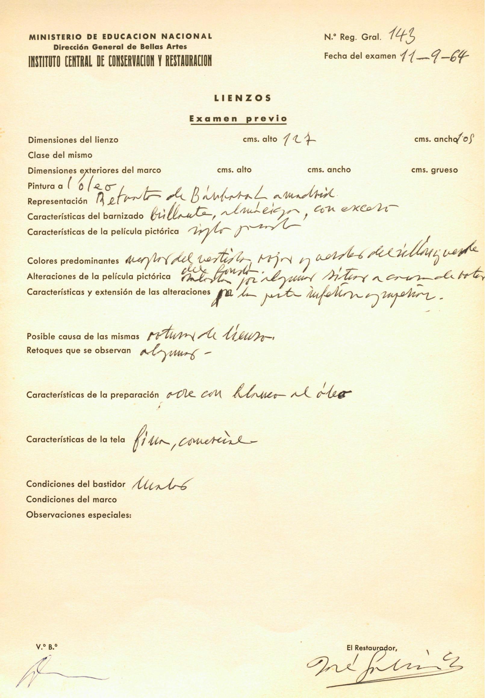 Restauración del "retrato de Bárbara Lamadrid", procedente de la Real Escuela Superior de Arte Dramático (Madrid)