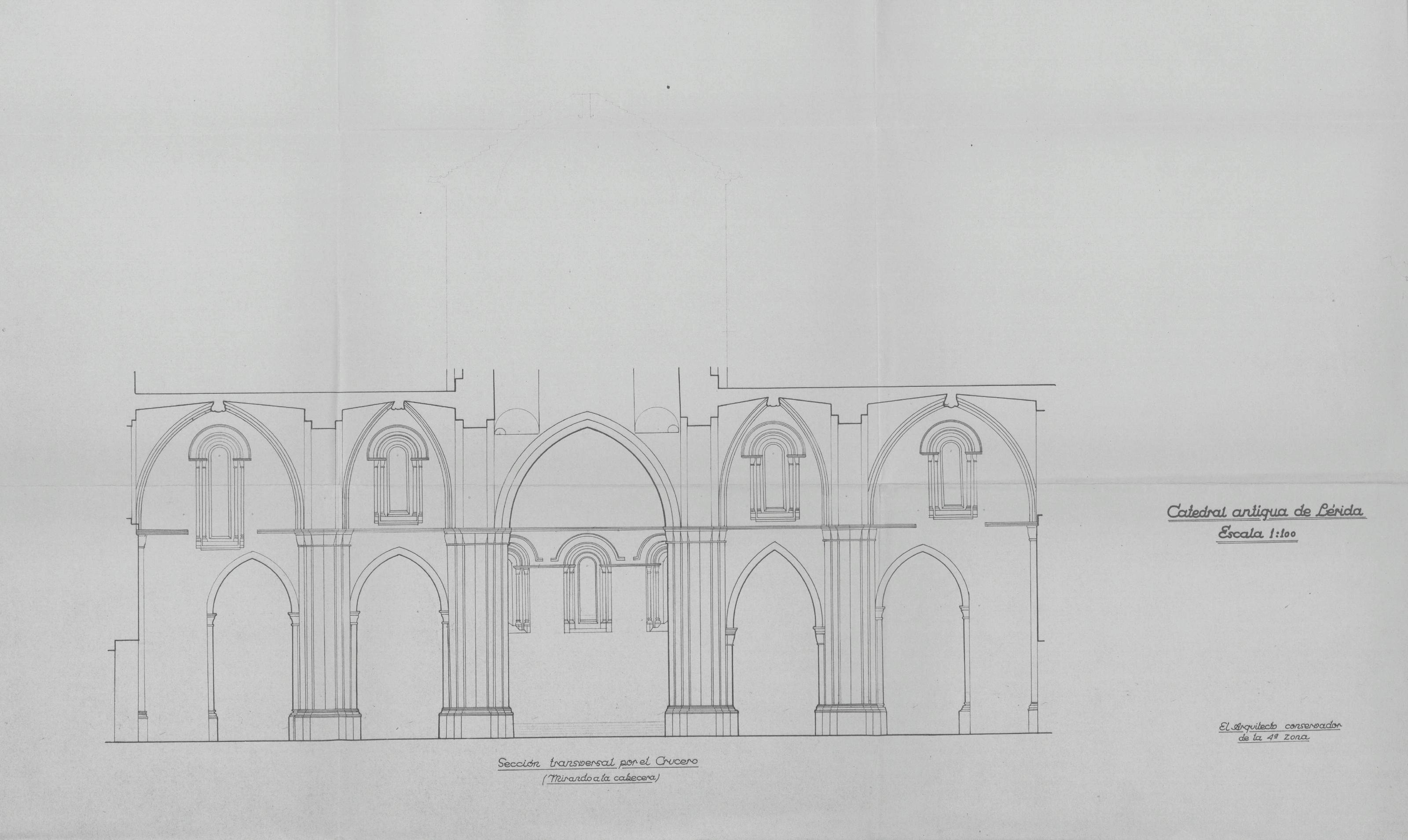 CATEDRAL ANTIGUA DE LLEIDA: SECCION TRANSVERSAL POR EL CRUCERO MIRANDO A LA CABECERA