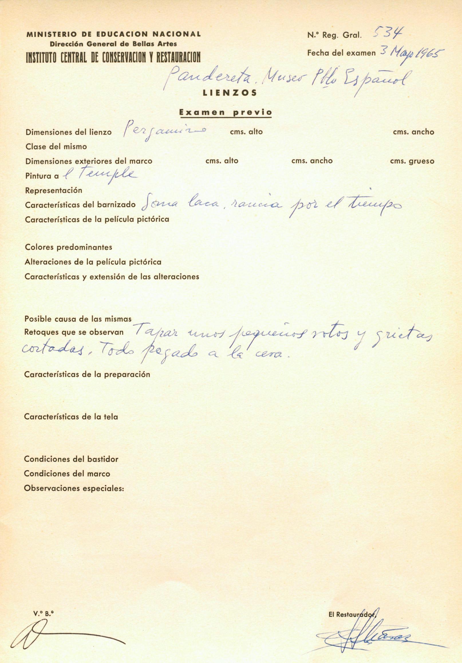 Restauración del temple sobre pergamino "Pandereta" del siglo XIX, procedente del Museo Nacional del Pueblo Español (Madrid)