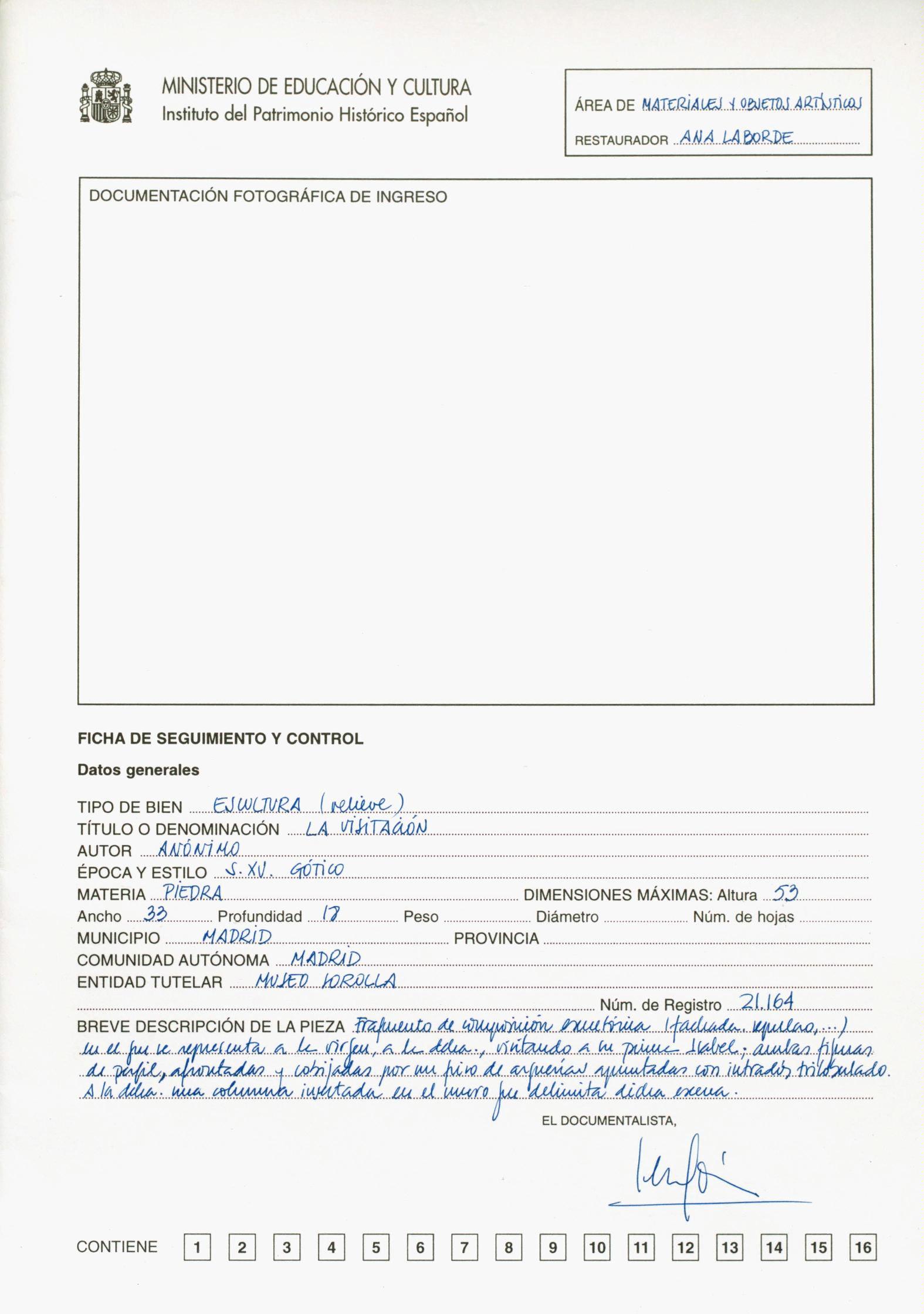 Restauración de un relieve representando la Visitación, procedente del Museo Sorolla de Madrid