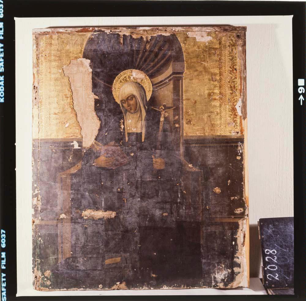 Restauración de la tabla "Santa Mónica" perteneciente al retablo de la transfiguración del Museo Municipal de Játiva (Valencia)