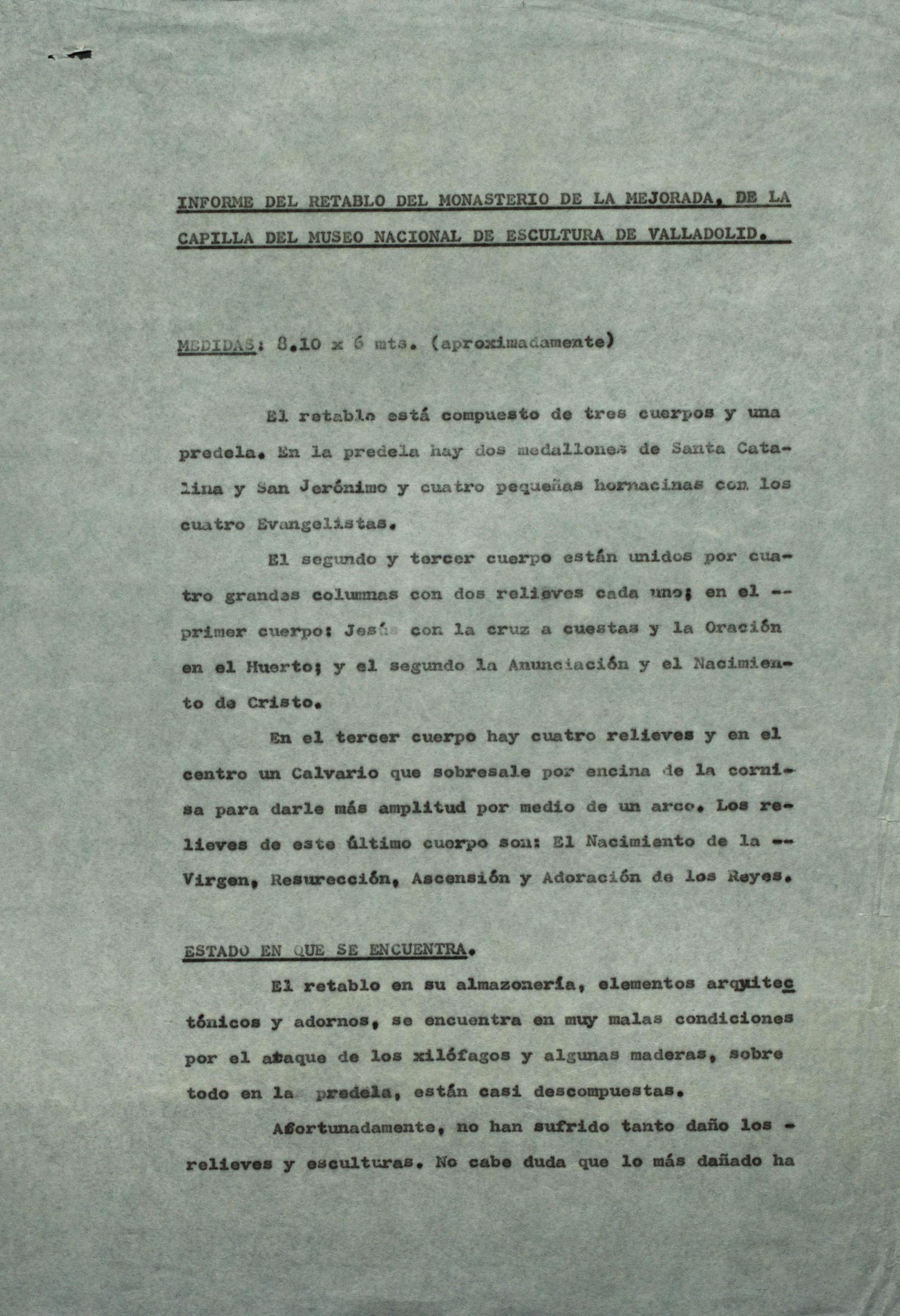 Restauración de esculturas, de Vasco de la Zarza y Berruguete, del retablo de Mejorada y de una escultura de Gregorio Fernández, procedentes del Museo Nacional de Escultura (Valladolid)