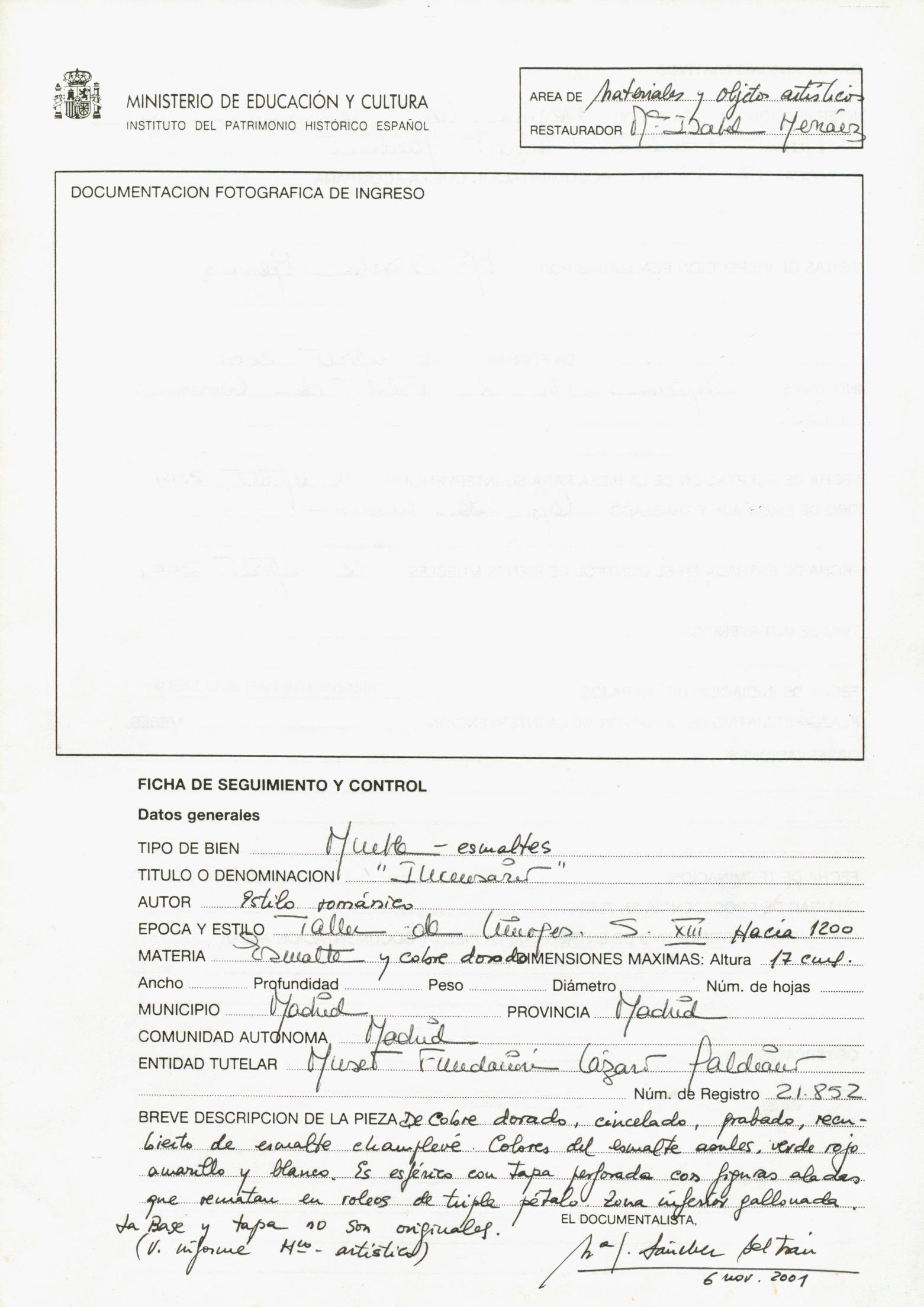 Restauración de un incensario románico de Limoges, del siglo XIII, procedente de la Fundación Lázaro Galdiano (Madrid)