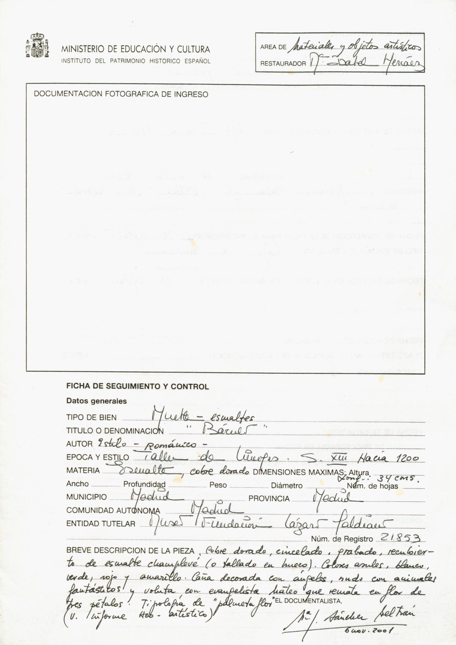 Herráez Martín, María Isabel / Restaurador
