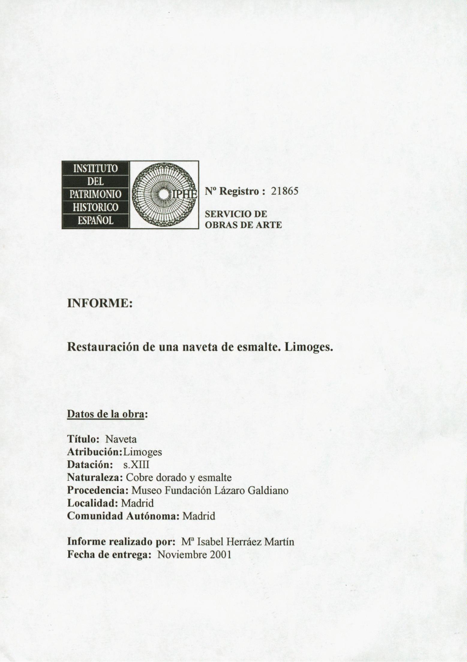 Restauración de una naveta de esmalte románica de Limoges, del siglo XIII, procedente de la Fundación Lázaro Galdiano (Madrid)