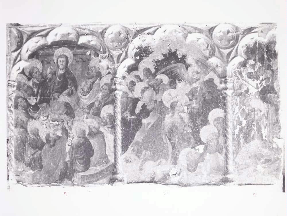 Fotografías de las tablas "Última cena", "Oración en el huerto" y "Prendimiento", de la predela del retablo de la Ermita del Espíritu Santo en Santa Cruz de Moya (Cuenca)
