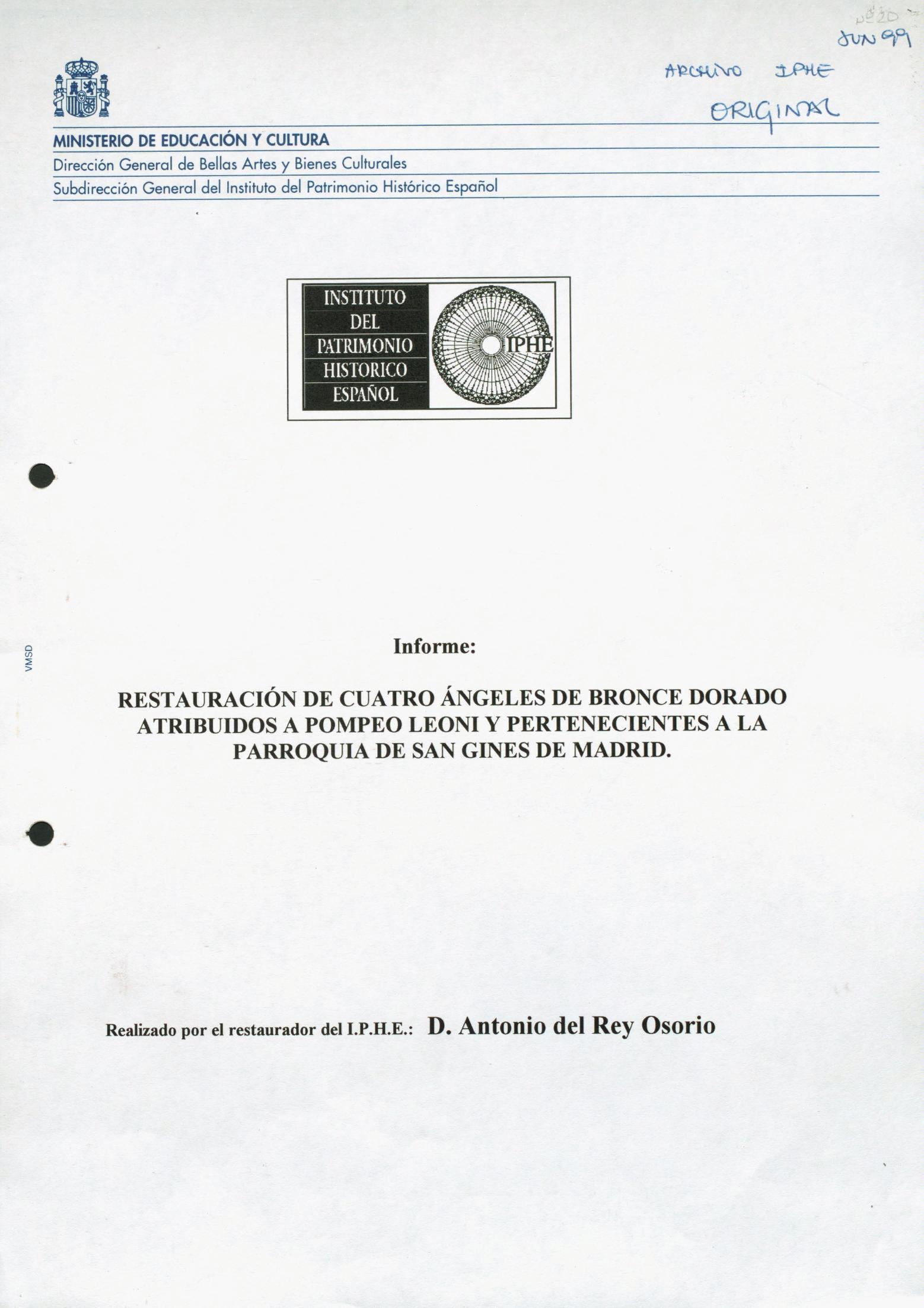 Restauración de cuatro ángeles de bronce dorado, atribuidos a Pompeo Leoni, prodecentes de la Iglesia de San Ginés de Madrid
