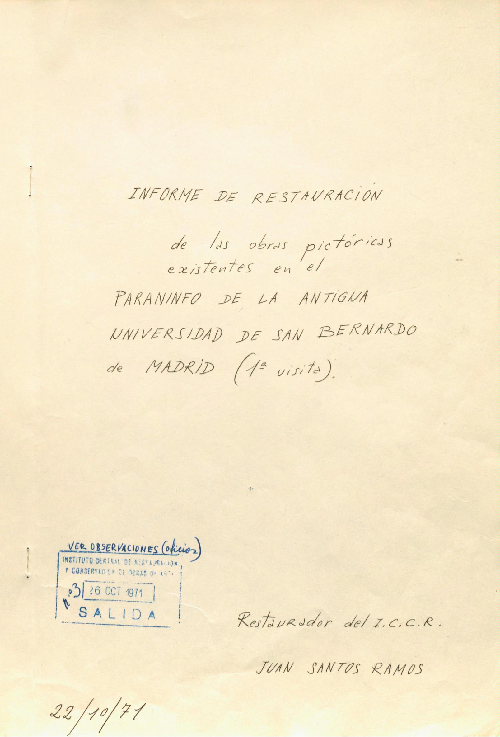 Restauración de las pinturas, de Joaquín Espalter, que decoran la bóveda del Paraninfo Universitario de San Bernardo de la Universidad Complutense de Madrid