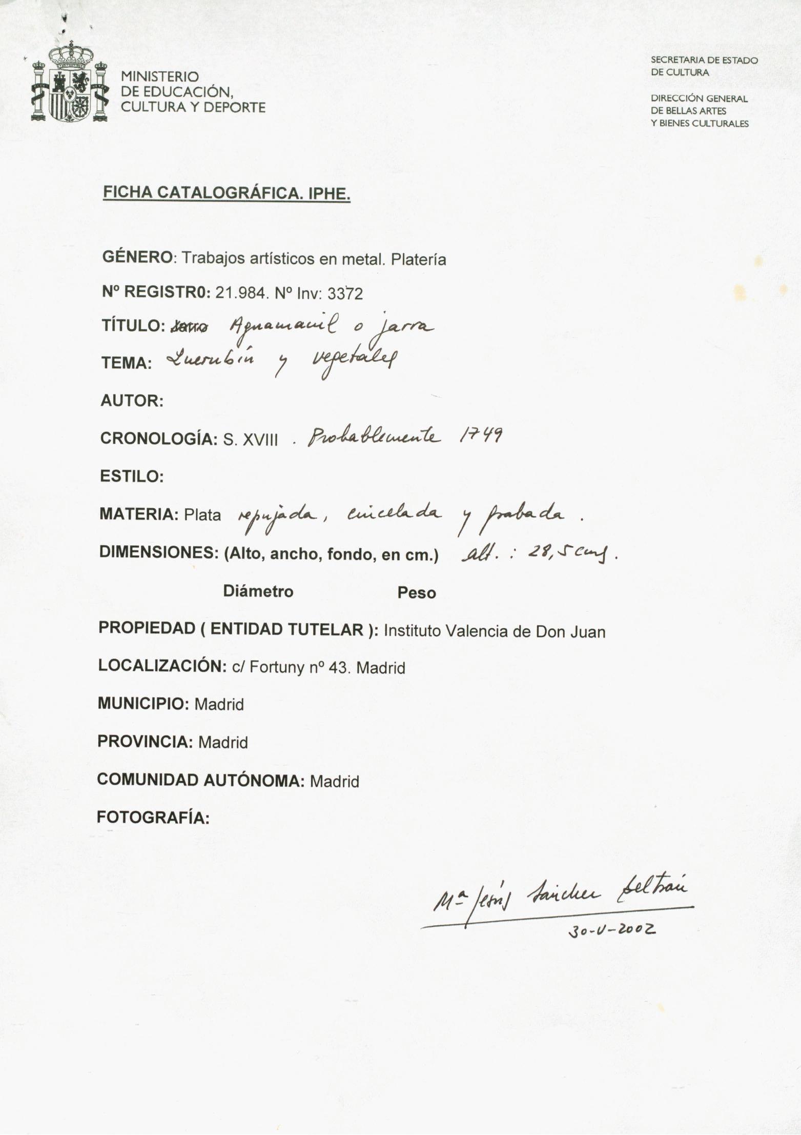 Restauración de un aguamanil o jarra neoclásica de plata procedente del Instituto Valencia de Don Juan de Madrid