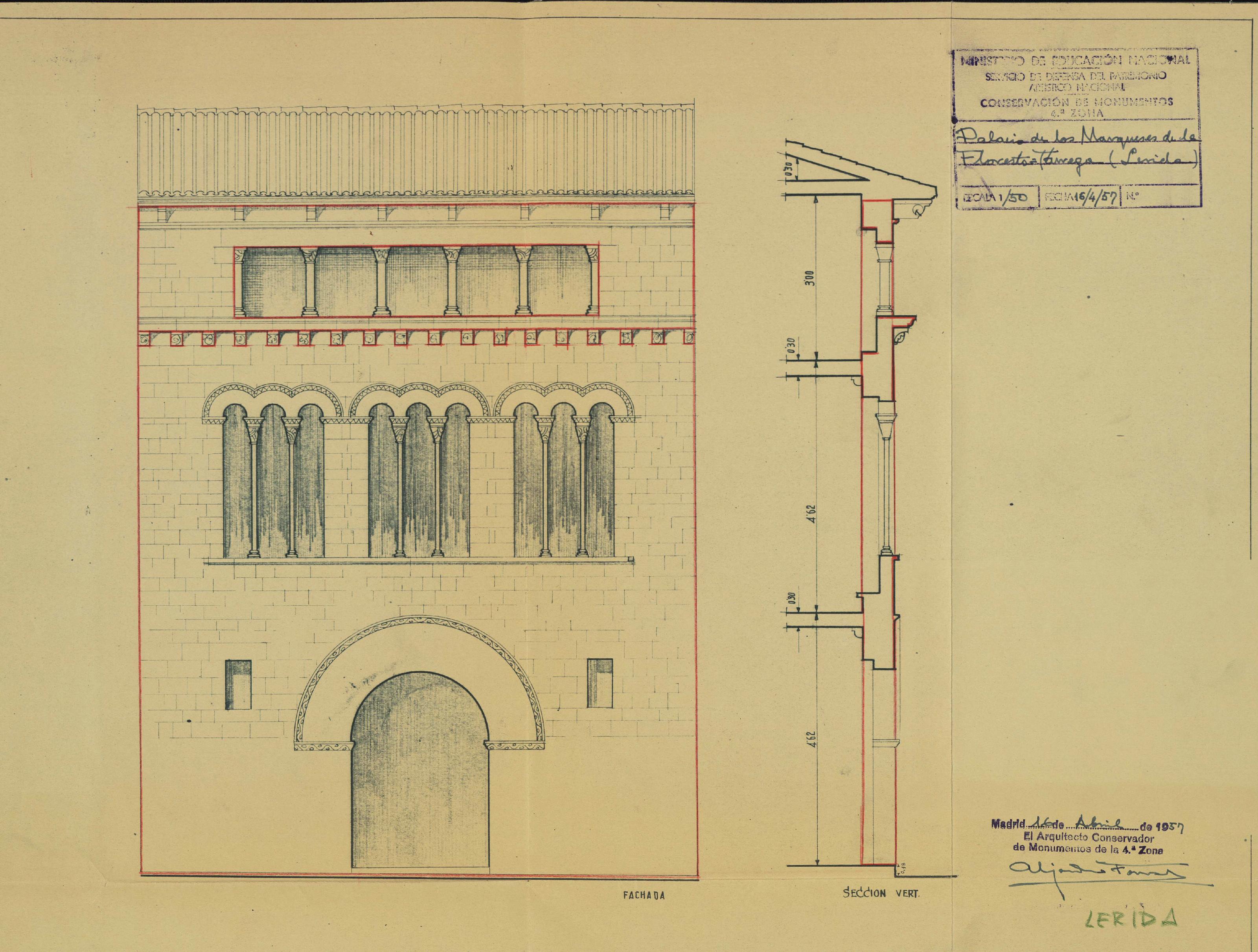 PALACIO DE LOS MARQUESES DE FLORESTA: FACHADA Y SECCION VERTICAL