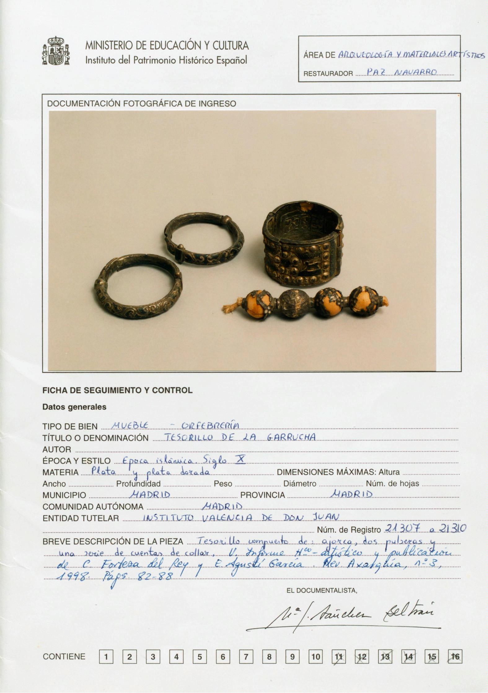 Restauración de piezas del Tesorillo de la Garrucha, procedentes del Instituto Valencia de Don Juan de Madrid
