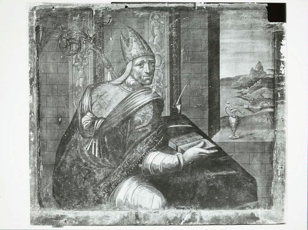 Fotografías de la restauración de la tabla de San Ambrosio de la predela del retablo mayor de la Iglesia parroquial de la Exaltación de la Santa Cruz de Palencia de Negrilla (Salamanca)