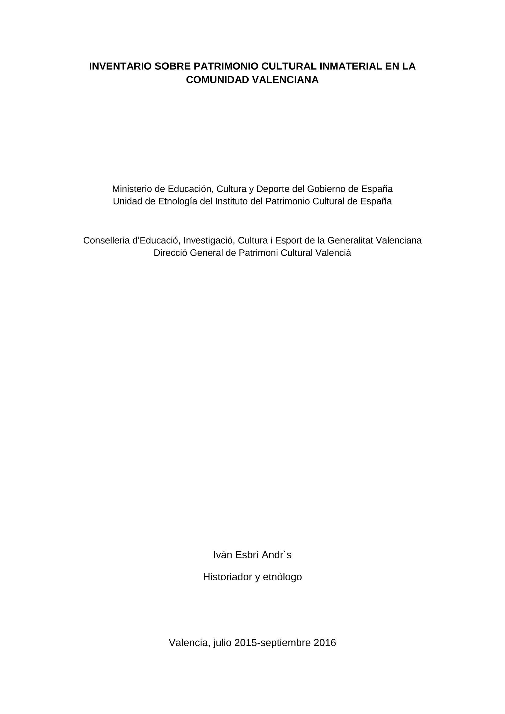 Inventario sobre patrimonio cultural inmaterial en la Comunidad Valenciana