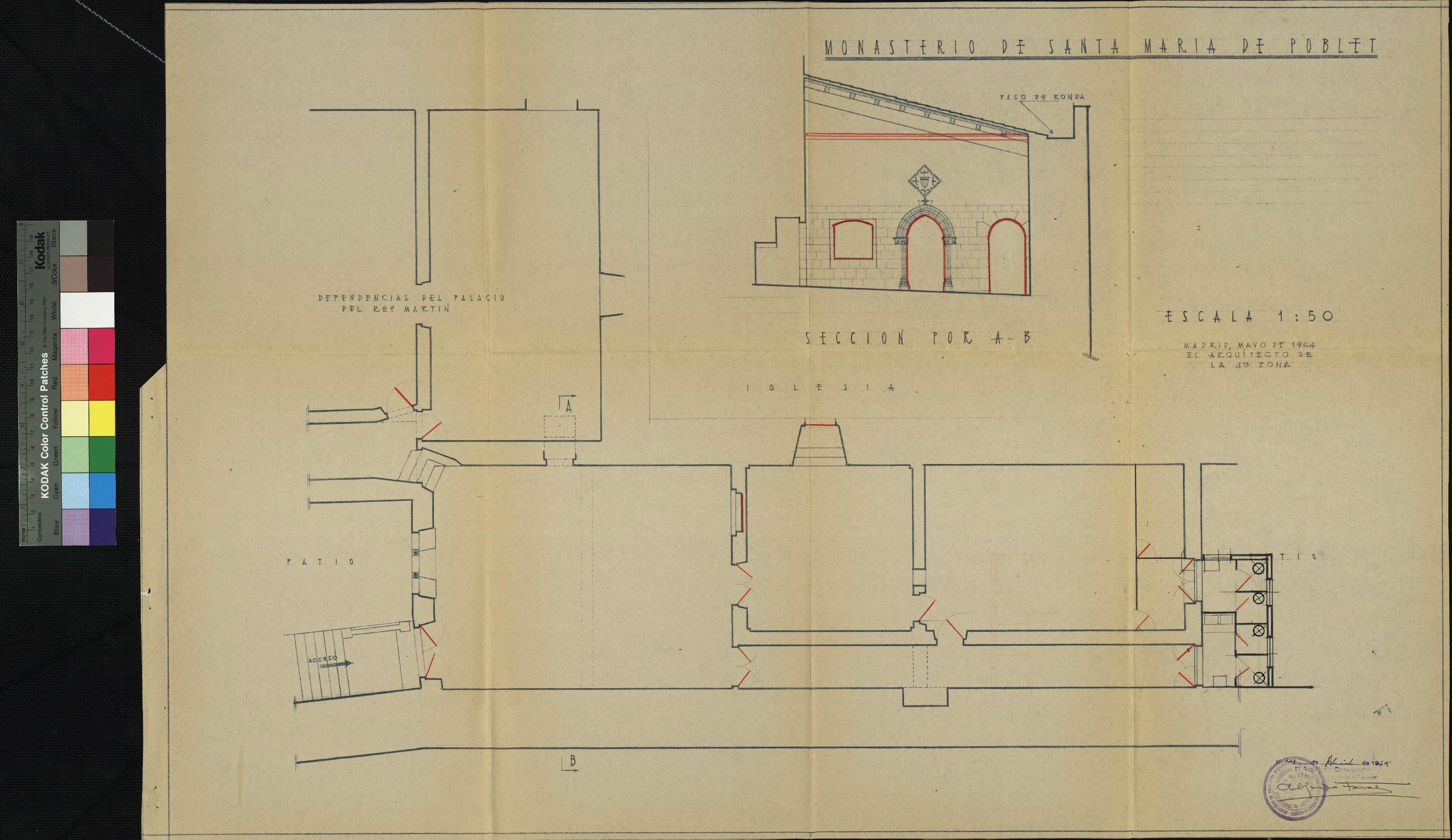 PALACIO DEL REY MARTIN EN EL MONASTERIO DE SANTA MARIA: PLANTA SECCION A-B
