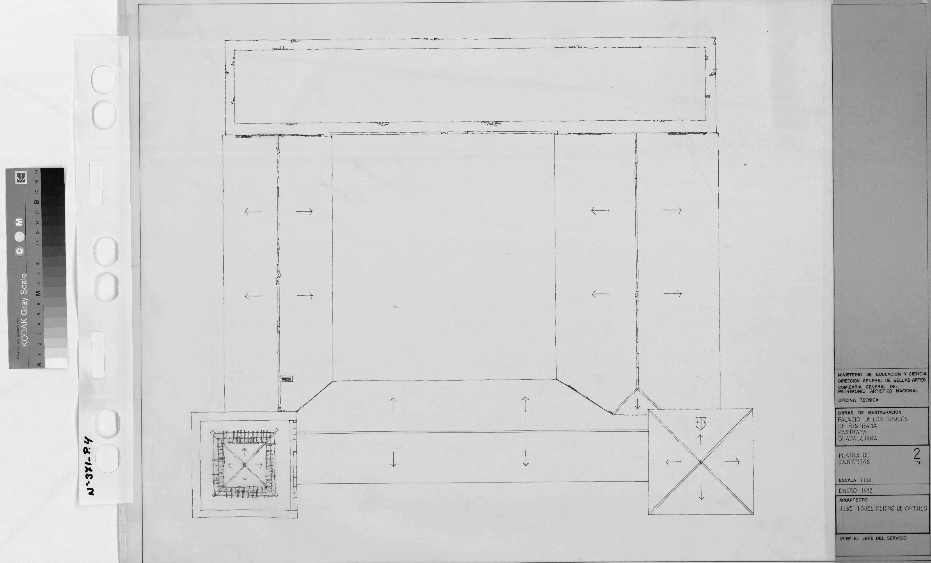 PALACIO DE LOS DUQUES DE PASTRANA - GUADALAJARA-: PLANTA DE CUBIERTAS , planta donde aparece dibujadas las pendientes de aguas, plano sin cotas