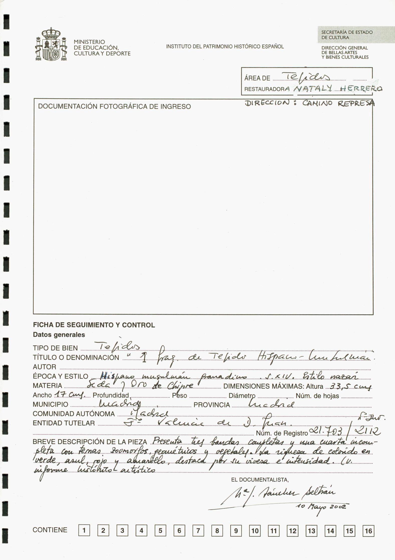 Restauración de nueve fragmentos de tejidos hispano-musulmanes, procedentes del Instituto Valencia de Don Juan de Madrid