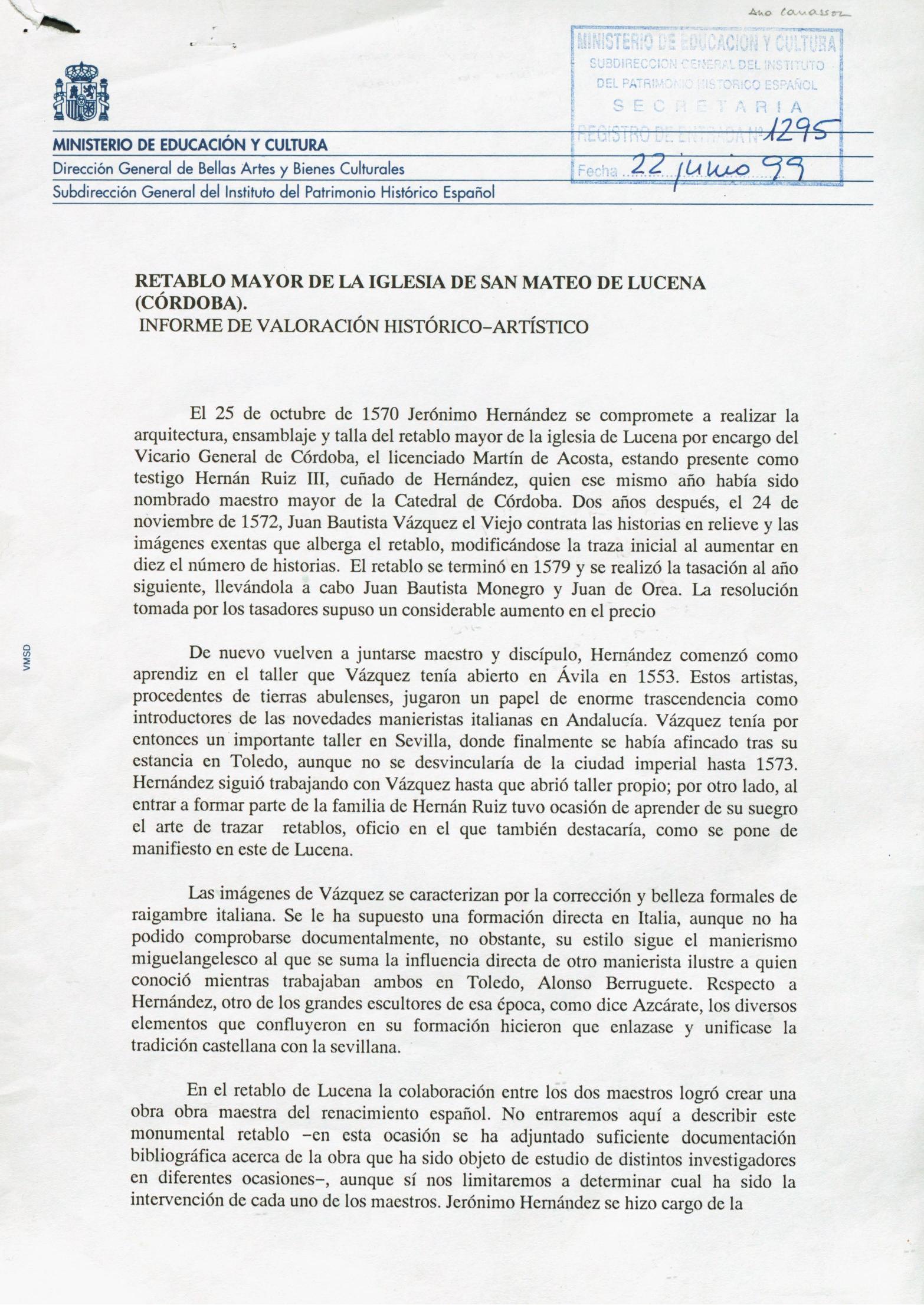 Restauración in situ del retablo mayor de la Iglesia parroquial de San Mateo de Lucena (Córdoba)