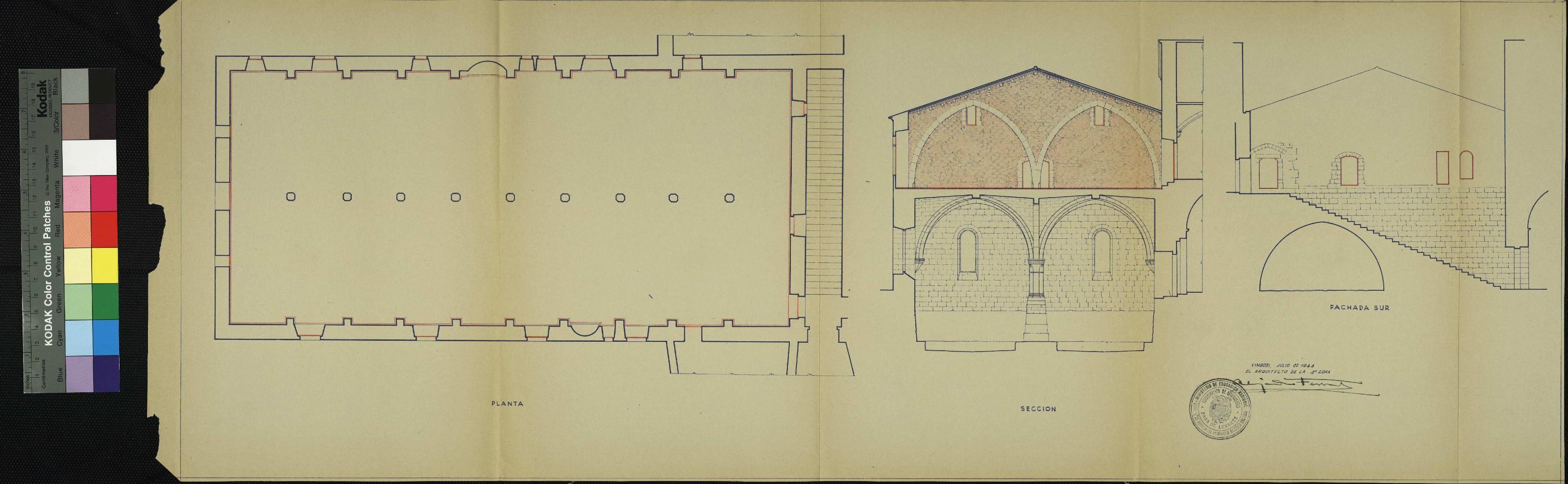 PALACIO DEL REY MARTIN EN EL MONASTERIO DE SANTA MARIA: PLANTA, SECCION Y FACHADA SUR