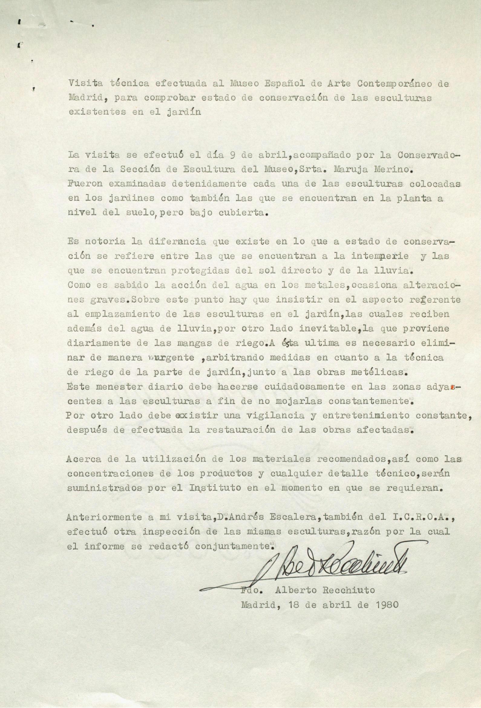 Informe de conservación de las esculturas del jardín del Museo Español de Arte Contemporáneo (Madrid)