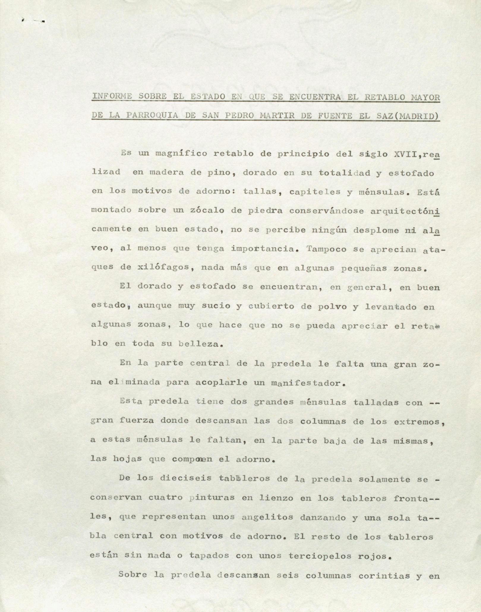 Restauración in situ del retablo mayor, de Francisco Ricci, procedente de la Iglesia de San Pedro Mártir de Fuente el Saz de Jarama (Madrid)
