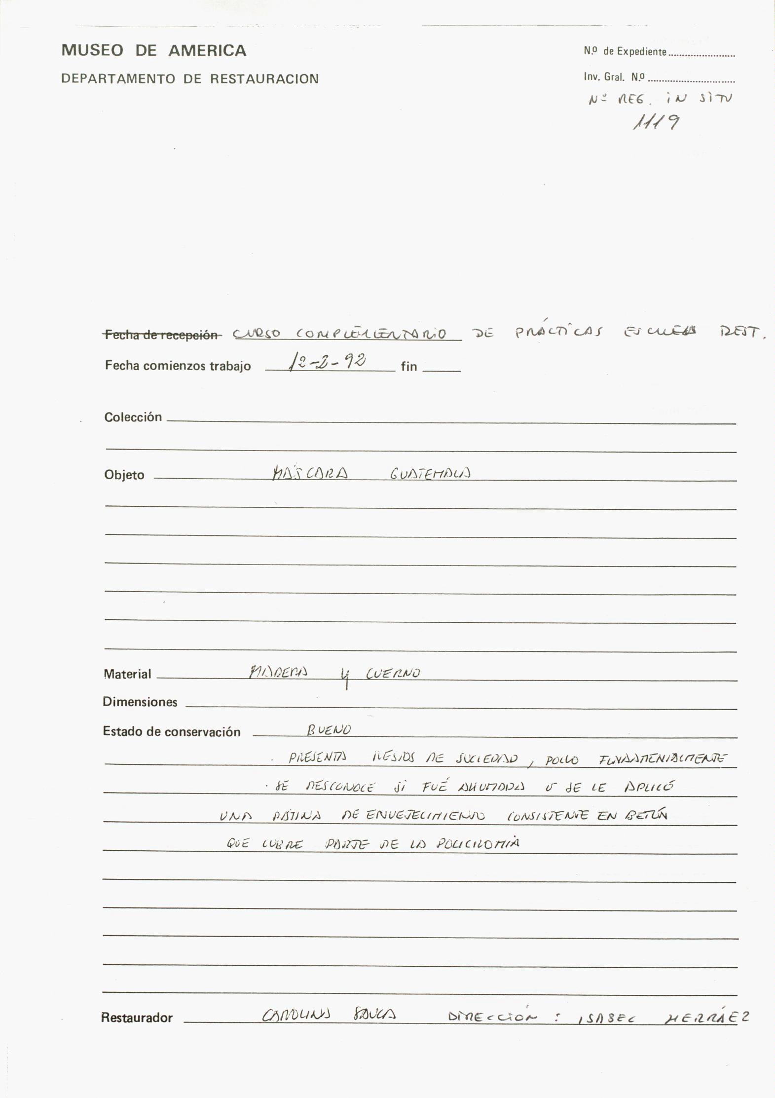 Restauración de una máscara de madera policromada de Guatemala, perteneciente al Museo de América (Madrid)