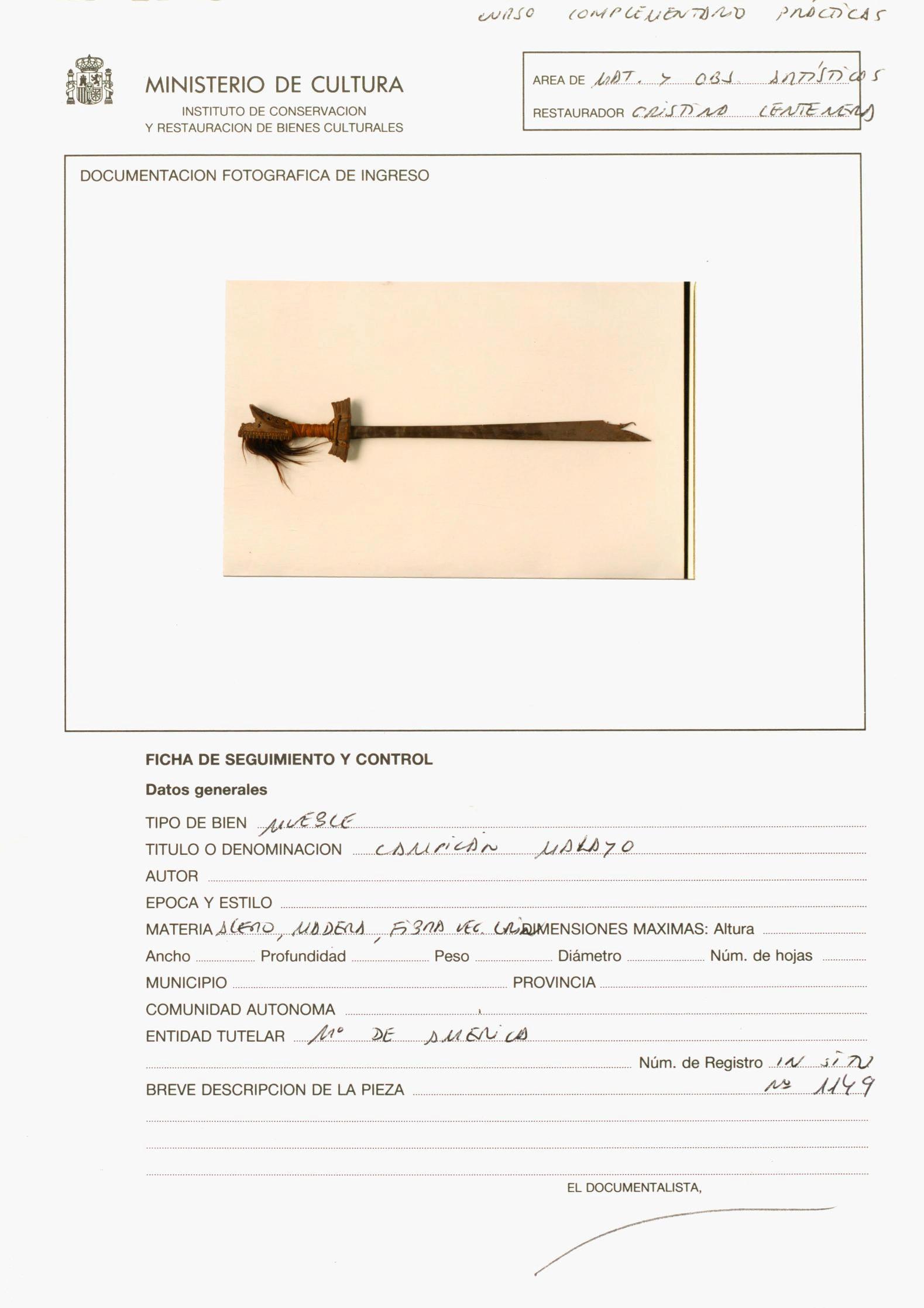 Restauración de una espada o campilán de los moros de Mindanao de Filipinas, perteneciente al Museo de América (Madrid)