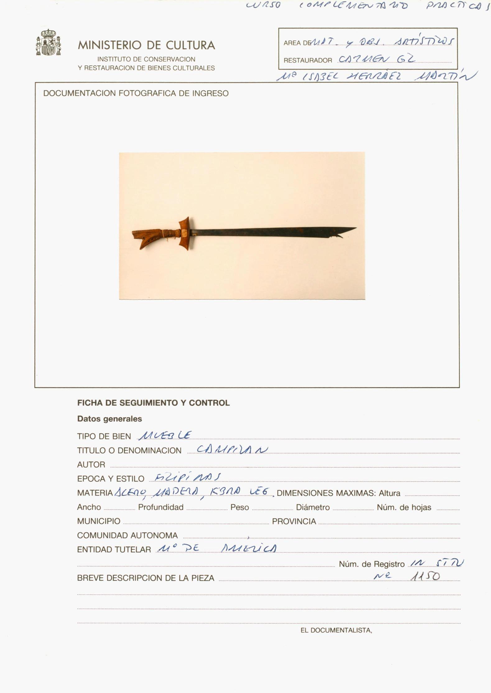 Restauración de una espada o campilán de los moros de Mindanao de Filipinas, perteneciente al Museo de América (Madrid)