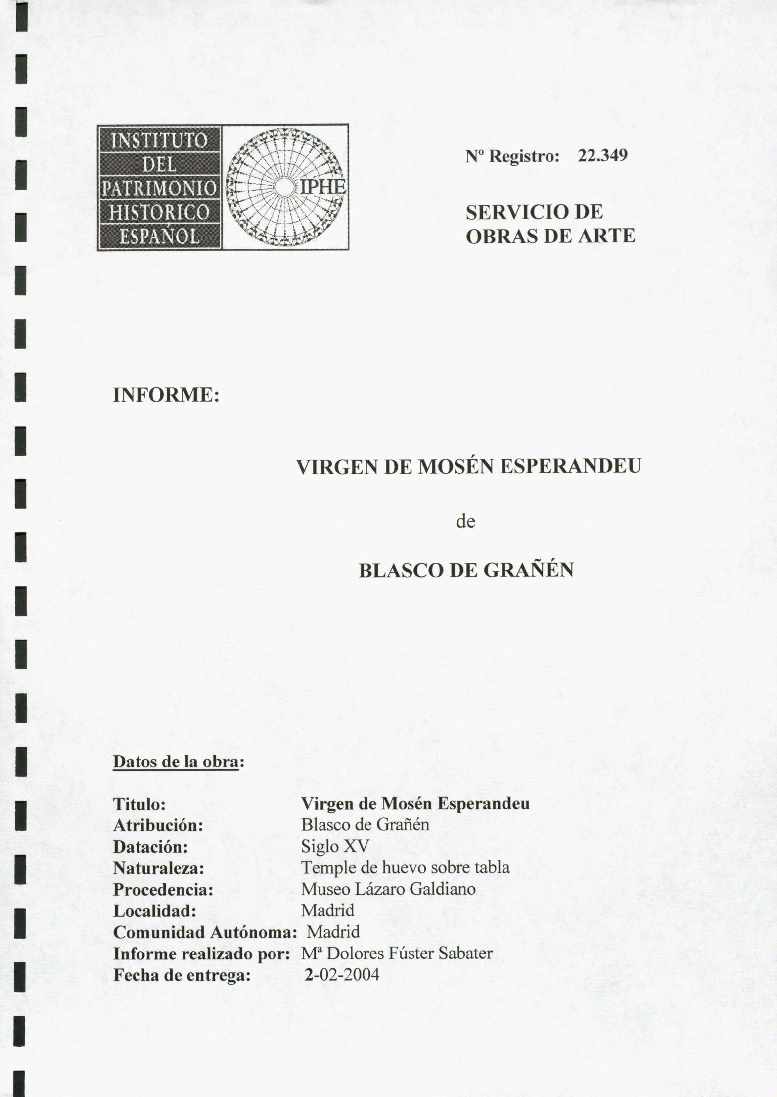 Restauración de la tabla "Virgen de Mosén Esperandeu", de Blasco de Grañén, procedente del Museo Fundación Lázaro Galdiano (Madrid)