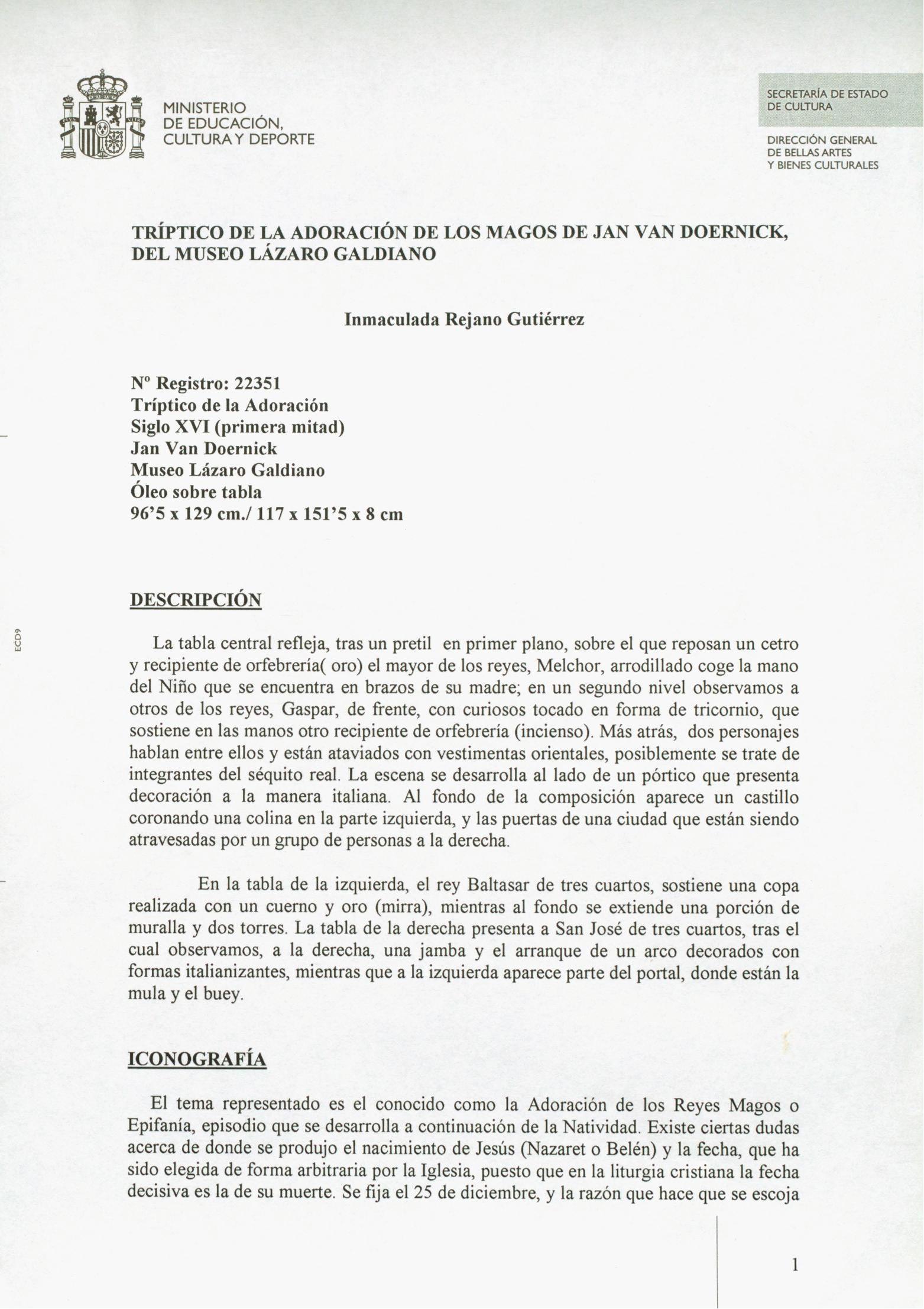 Informe histórico-artístico del tríptico "La Adoración de los Magos", de Jan Van Doernick, procedente del Museo Fundación Lázaro Galdiano (Madrid)