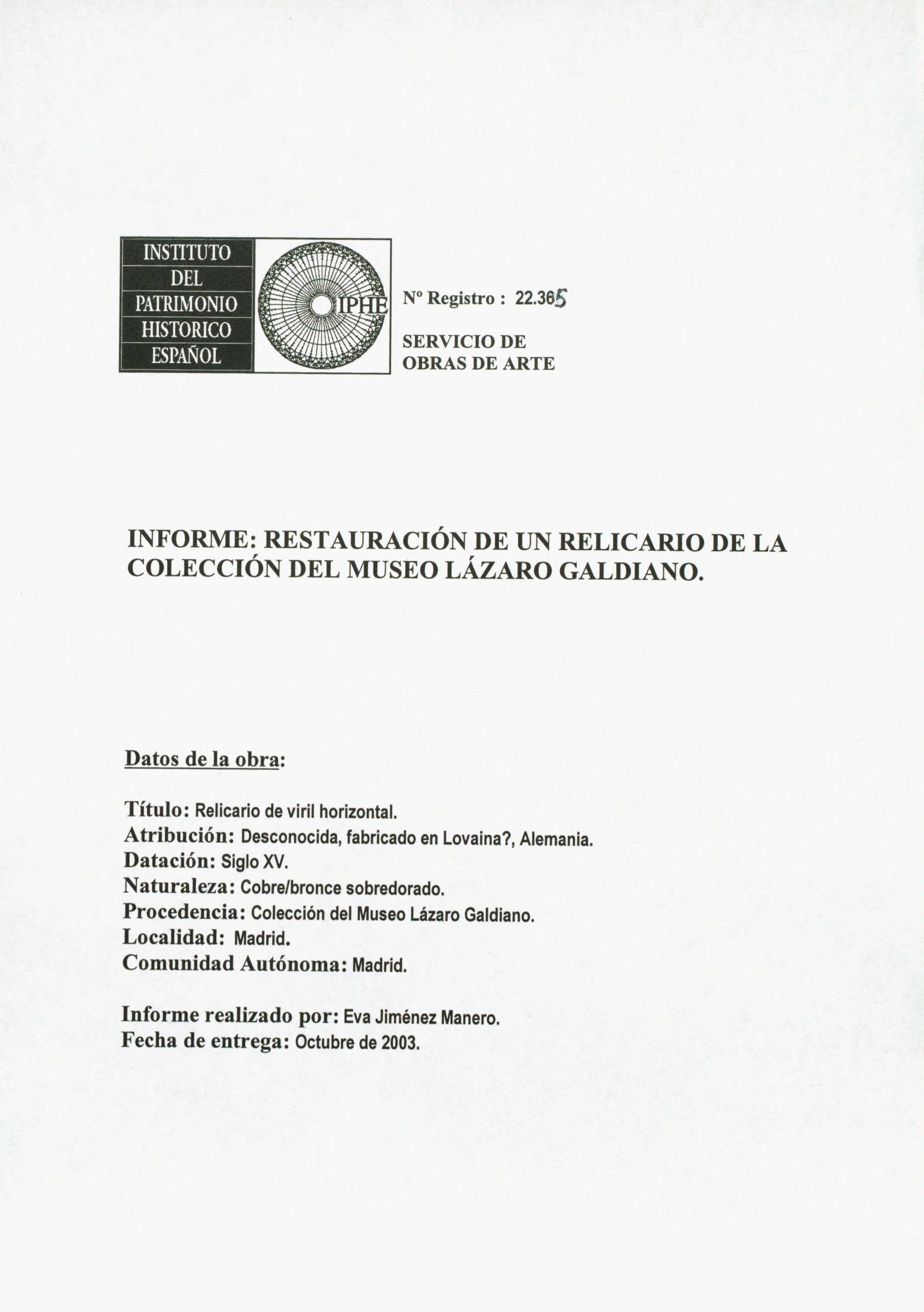 Restauración de un relicario procedente del Museo Fundación Lázaro Galdiano (Madrid)