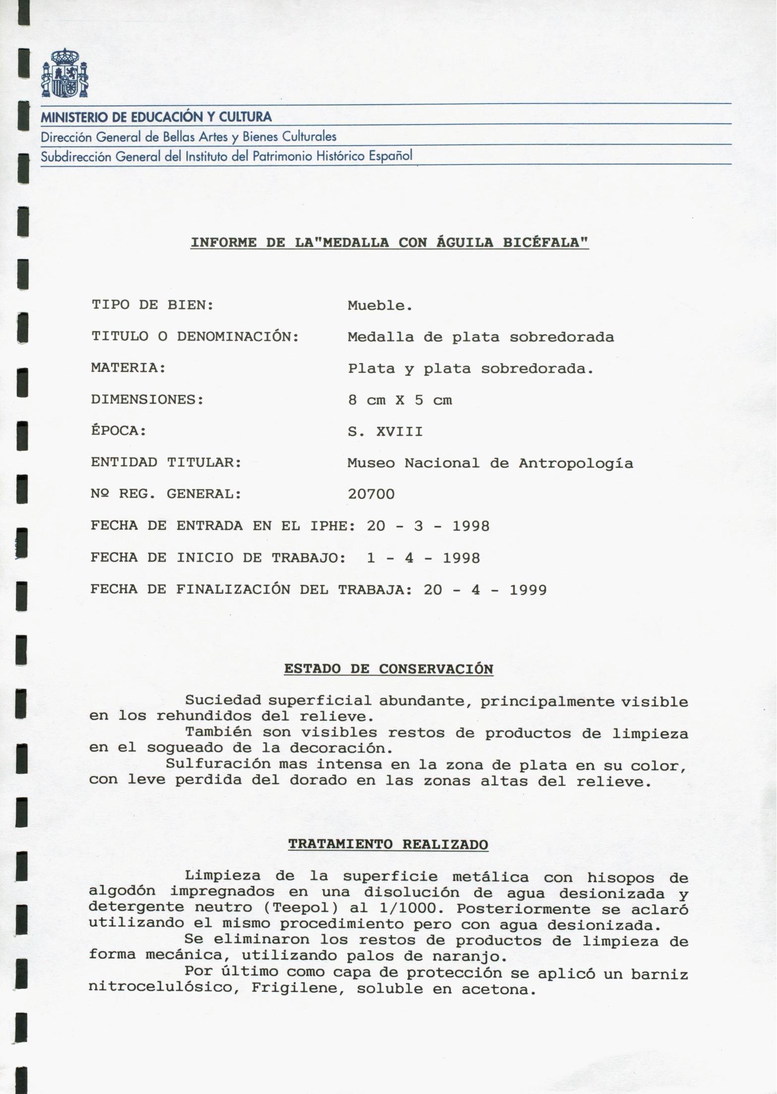 Restauración de una medalla con águila bicéfala, procedente del Museo Nacional de Antropología (Madrid)