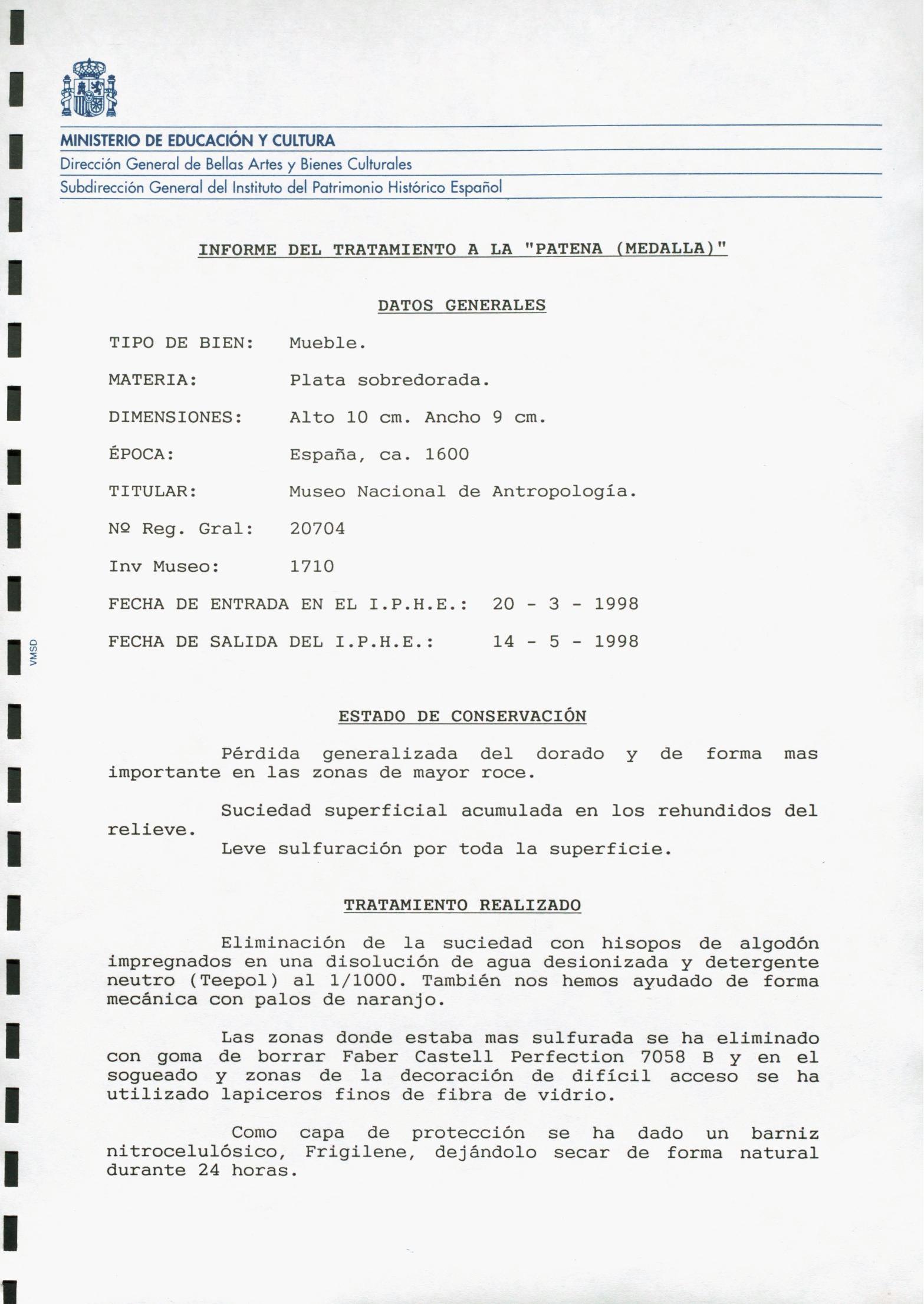 Restauración de una patena (collar) procedente del Museo Nacional de Antropología (Madrid)