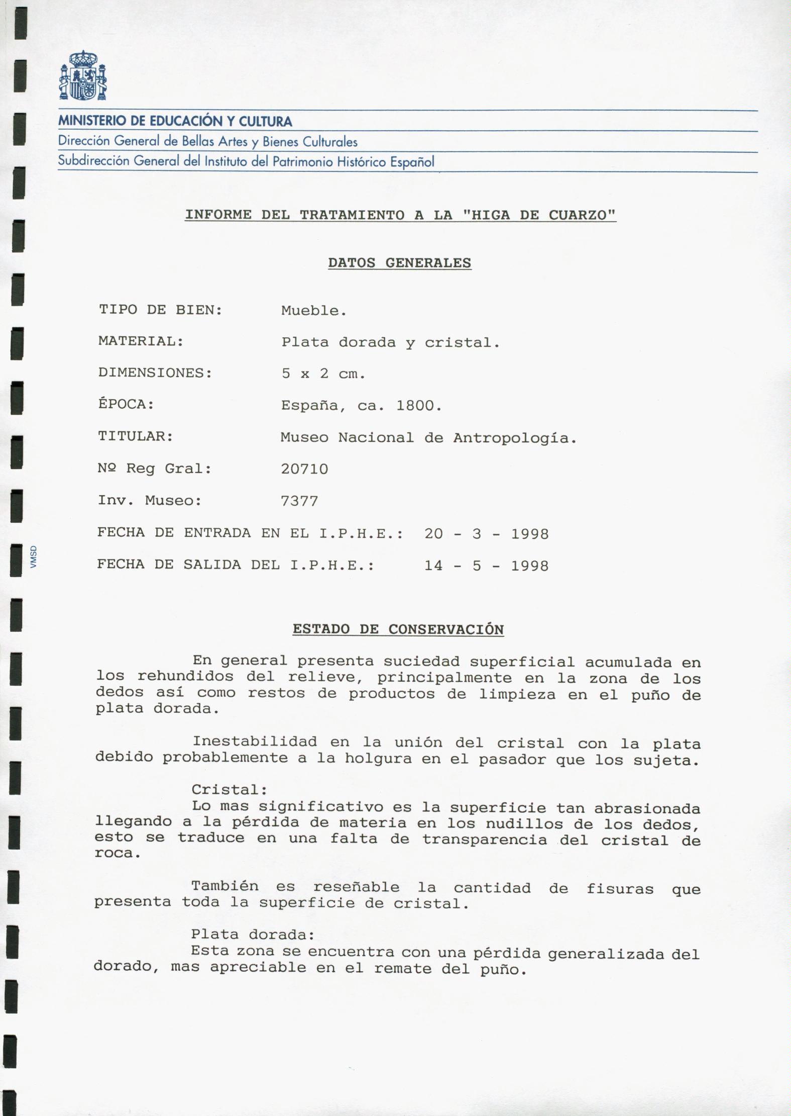 Restauración de una higa de cuarzo procedente del Museo Nacional de Antropología (Madrid)