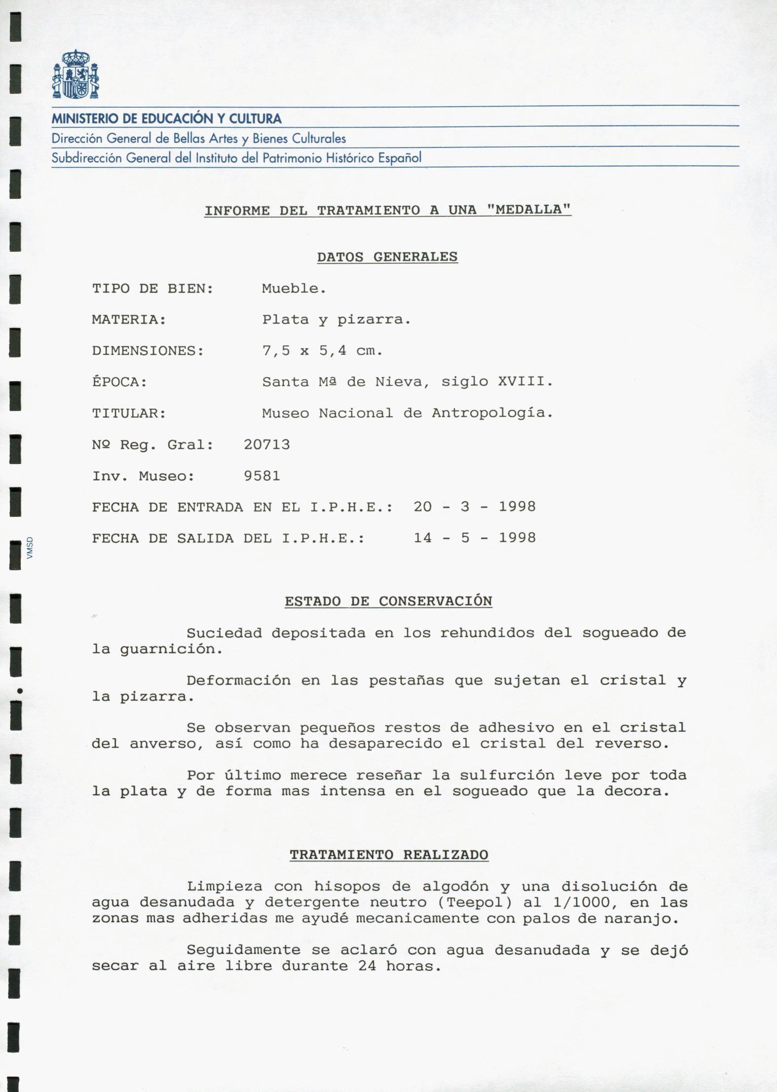 Restauración de una medalla procedente del Museo Nacional de Antropología (Madrid)