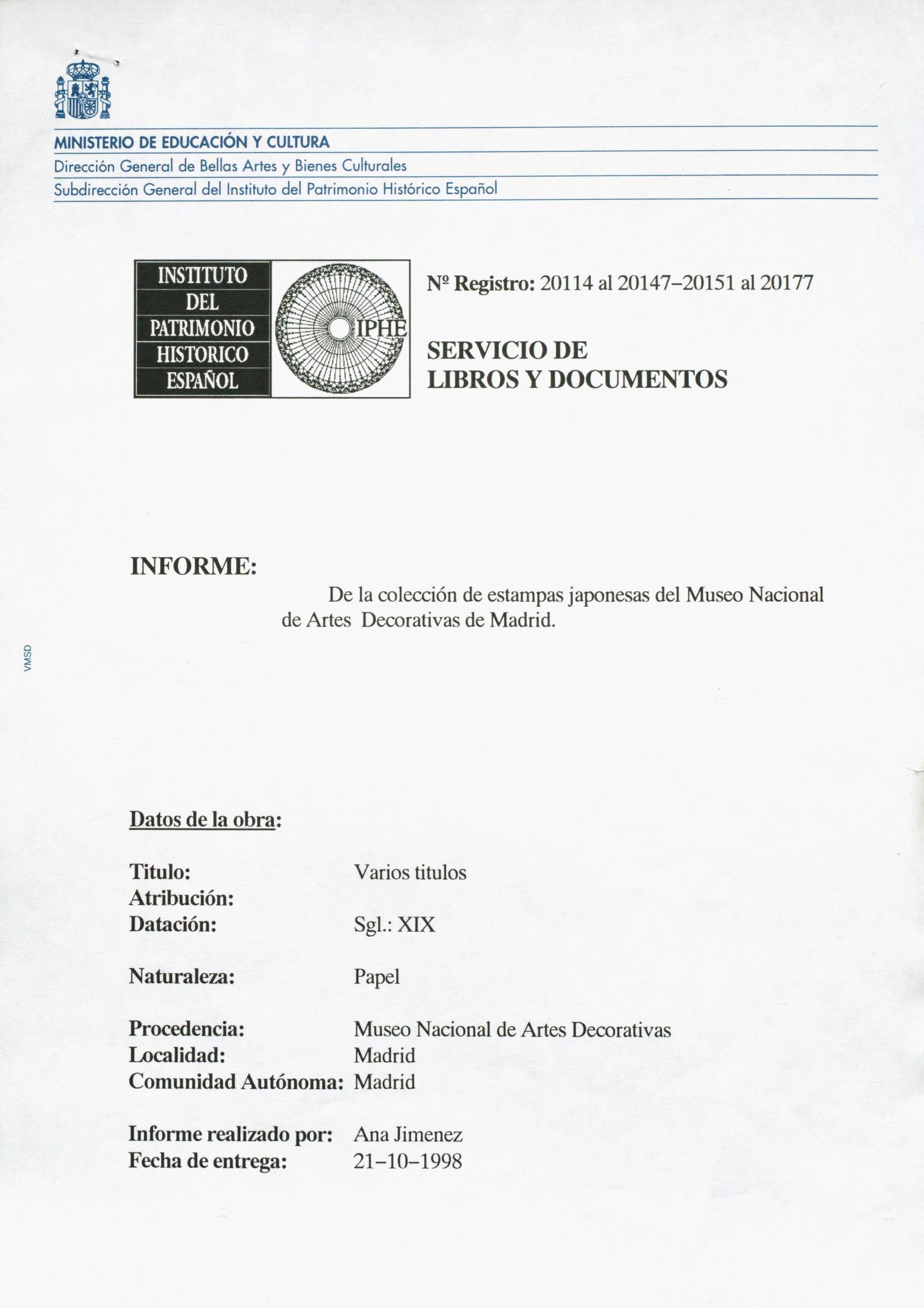 Restauración de estampas japonesas (34 estampas y 27 libros), procedentes del Museo Nacional de Artes Decorativas (Madrid)