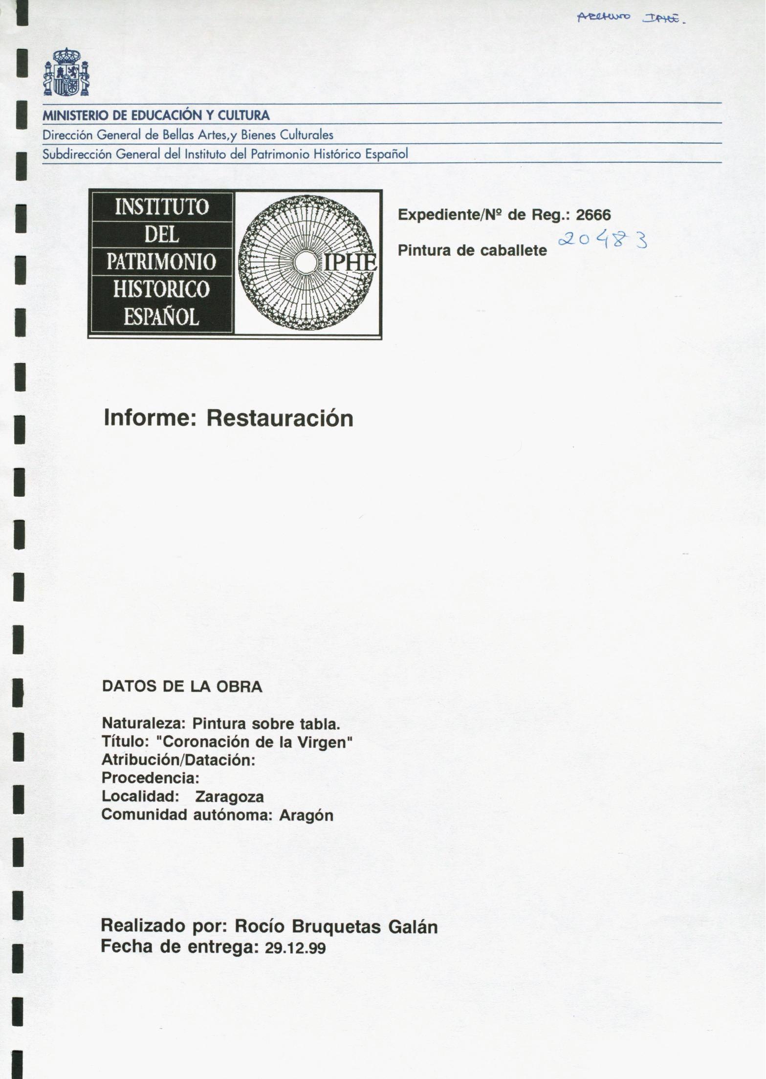 Restauración de la pintura sobre tabla "Coronación de la Virgen", propiedad del Arzobispado de Zaragoza